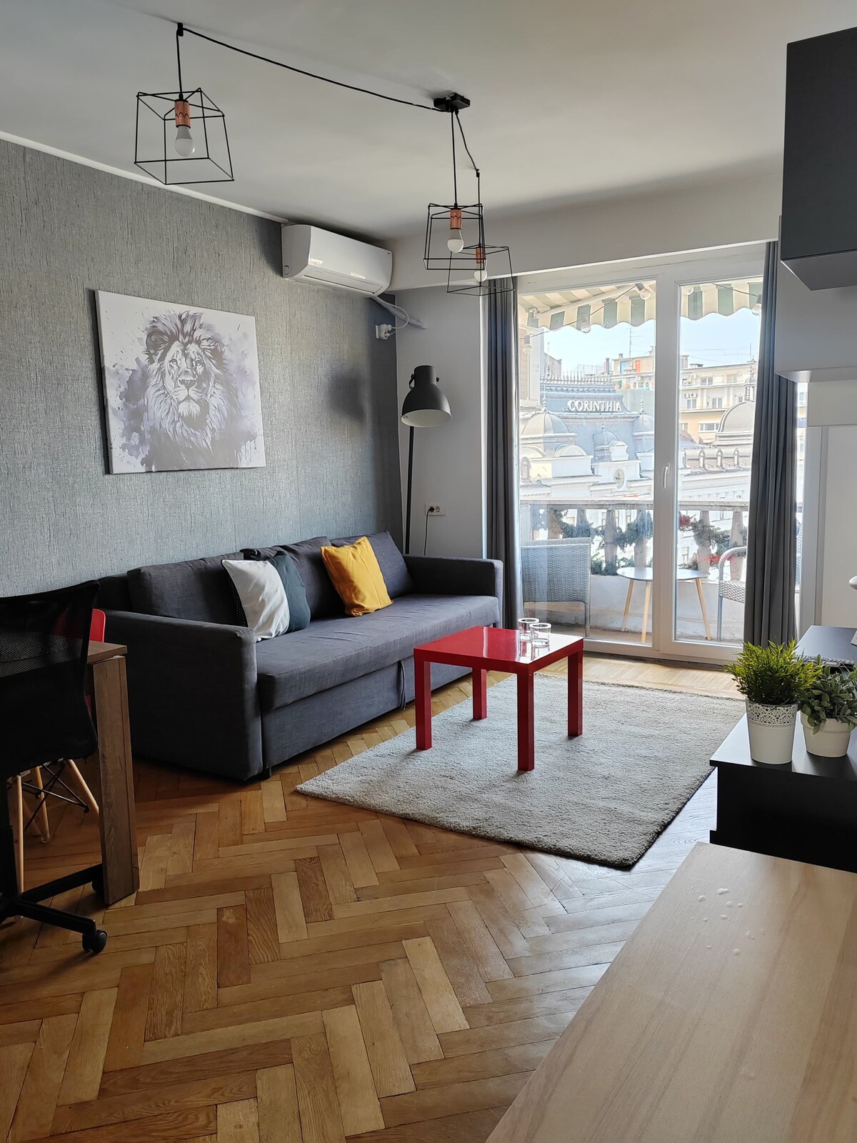 Perfectly located 75 sqm apartment, near Victoriei Avenue and the Revolution Square, also across the street from the beautiful Cismigiu Park. Guests enjoy 2 completely separate bedrooms and a double living room that can be transformed, when needed, into a 3rd bedroom which gets full privacy from the lounge area by closing thick glass doors that have opaque curtains. 2 full bathrooms and fully equipped kitchenette are available. We can provide airport transfer and guided tours.