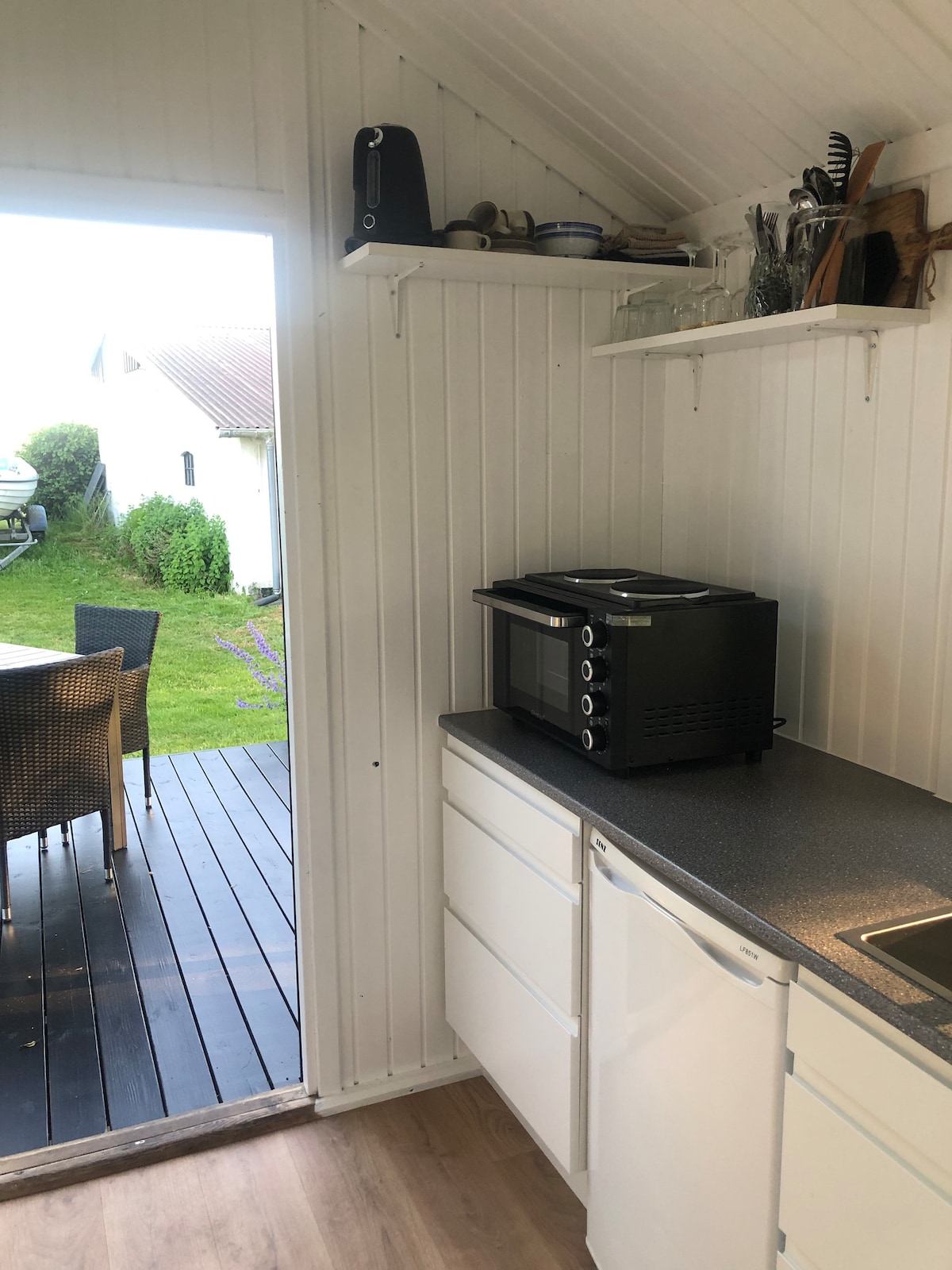 TINY HOME SAMSØ ligger ca. 800 meter fra Sælvig Havn med de to færger til/fra Jylland. Huset er opført i 2022 - vi overtog det i marts 2024 - og renoverer det løbende for at forbedre komfort og kvalitet. Der er 300 m til vandet, hvor man kan gå en dejlig tur langs kysten og 800 m til fantastisk strand med badebro.