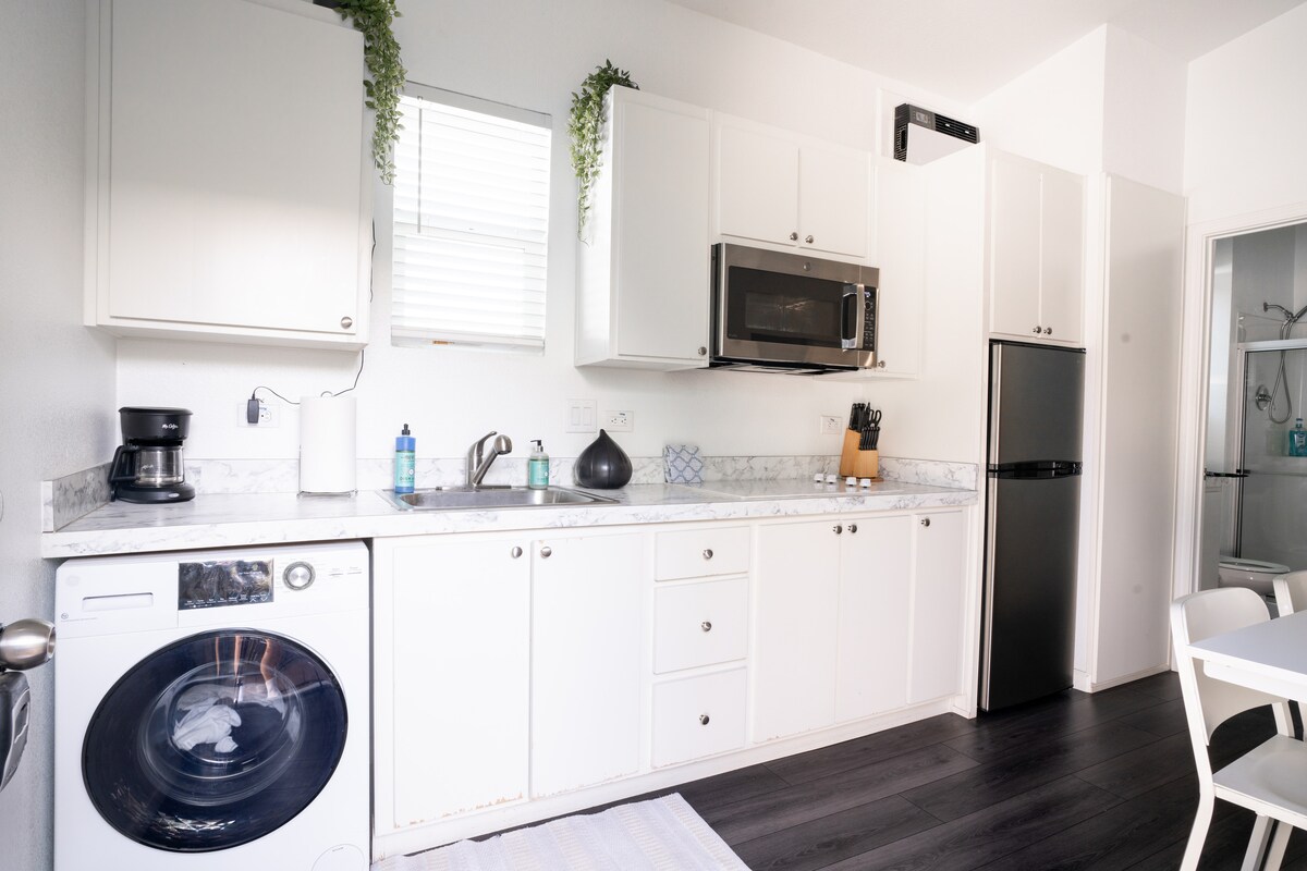 Bine ai venit în propria ta oază privată din această casă de oaspeți fermecătoare! Recent construită în 2021, este o casă complet modernă, perfectă pentru câteva zile în West Los Angeles și la 5 minute de nisipul de pe Venice Beach. Nu împarte vecinii și are propriul gard în curte. Casa are mașină de spălat rufe și uscător și o bucătărie completă. Situat chiar lângă Venice Beach, Mar Vista și Culver City. E ușor să ajungi din LAX și să te deplasezi în Los Angeles. Construcție nouă și frumos proiectată.