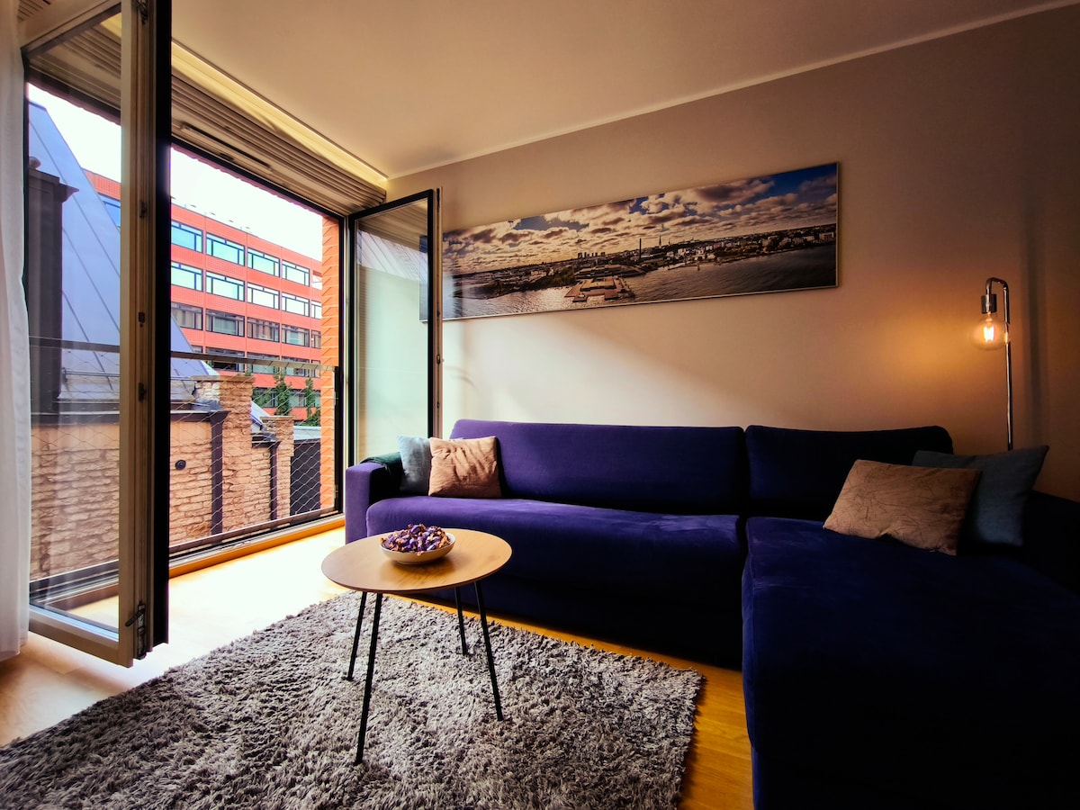 Acest studio fermecător este situat superb și are tot ce trebuie la îndemână. Apartamentul este bine echipat, spațios (37 m2) și situat convenabil la etajul al doilea, accesibil cu liftul. De la fereastra mare, există o vedere calmantă a parcului. Zona Kalamaja este calmă. Relaxează-te în parc, bucură-te de zona marină nouă și vibrantă, mănâncă pizza sau sushi alături sau plimbă-te până la centrul comercial bine aprovizionat. Centrul vechi se află, de asemenea, la câțiva pași. Există multe opțiuni de transport.