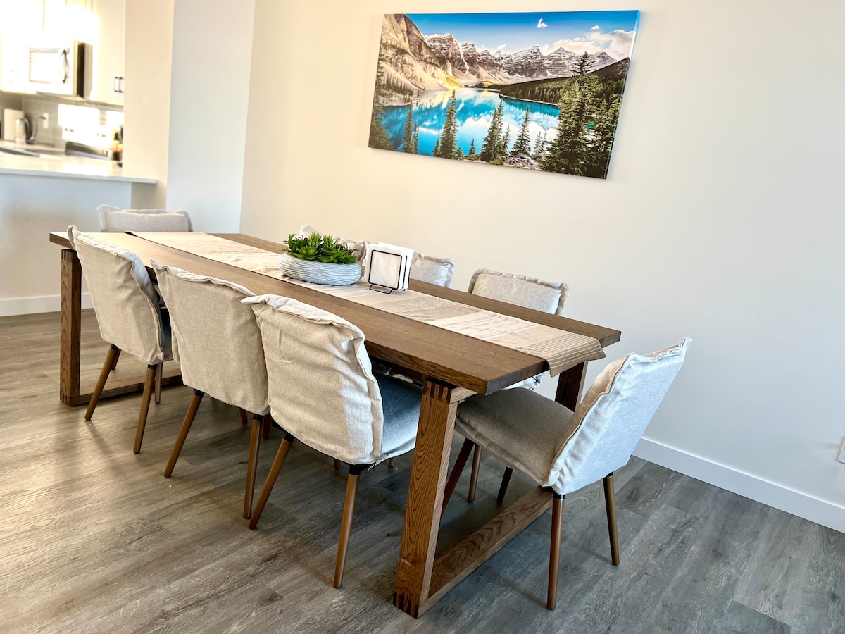 Welcome to our brand new townhouse, conveniently located just 15 minutes from the airport. Embrace the ease of access to various amenities such as Costco, Super Walmart, CrossIron Mills, and more, all within a 10-15 minute drive. Additionally, this cozy spot is only an hour and a half away from the breathtaking beauty of Banff. Enjoy day trips to Banff, Lake Louise, Moraine Lake, and other stunning destinations. Save substantially while relishing the comfort of this lovely retreat.