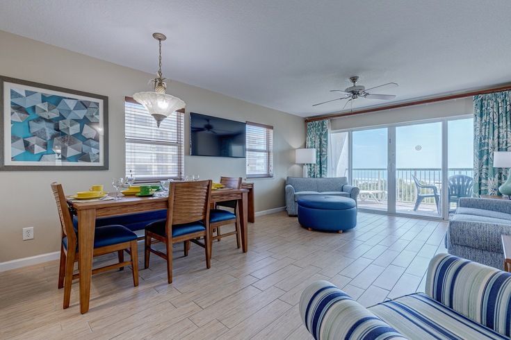 Bine ai venit la refugiul tău elegant de pe malul oceanului din Cocoa Beach, Florida, care îți aduce la viață visele de vacanță din Florida. Acest apartament spațios de 1200 de metri pătrați este la câțiva pași de o piscină mare și de plajă. Este o escapadă ideală pentru familii sau cupluri. Intră și fii întâmpinat de o zonă de living conceptuală deschisă, împodobită cu un decor actualizat, ferestre care inundă spațiul cu lumină naturală, televizoare LCD mari și o bucătărie complet utilată, care permite mese la masa din sufragerie sau pe un balcon privat.