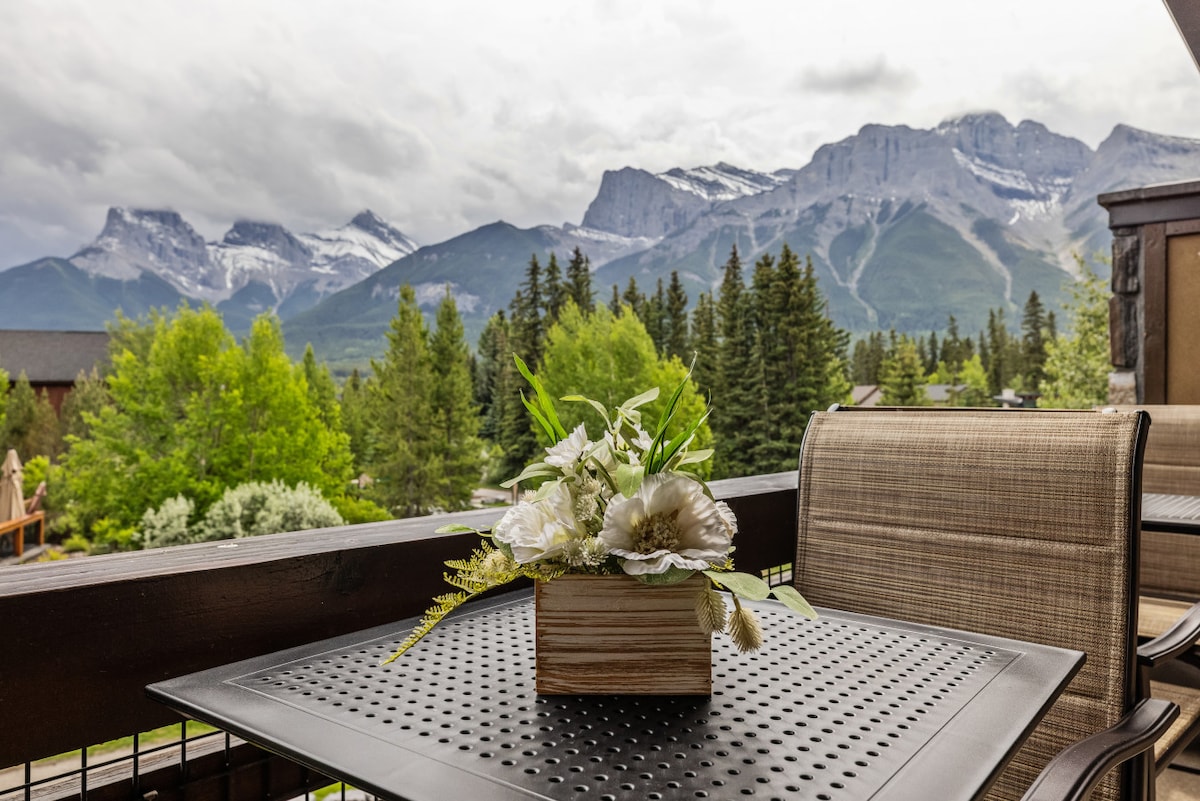VEDERI PANORAMICE LA MUNTE, 2 CĂZI CU HIDROMASAJ ÎN AER LIBER, SAUNĂ ȘI PERMIS DE ACCES LA PARC NAȚIONAL Relaxează-te pe terasă și bucură-te de cele mai uimitoare priveliști din Canmore! Cele trei surori, Muntele Rundle și vârful Ha-Ling sunt chiar în fața ușii tale. De fapt, fiecare fereastră are o vedere uimitoare la cartea poștală! Apartamentul nostru are tot ce ai nevoie pentru a te bucura de o vizită fără stres în Munții Stâncoși; Indiferent dacă ești în vacanță cu familia, într-o escapadă romantică sau lucrezi de la distanță!