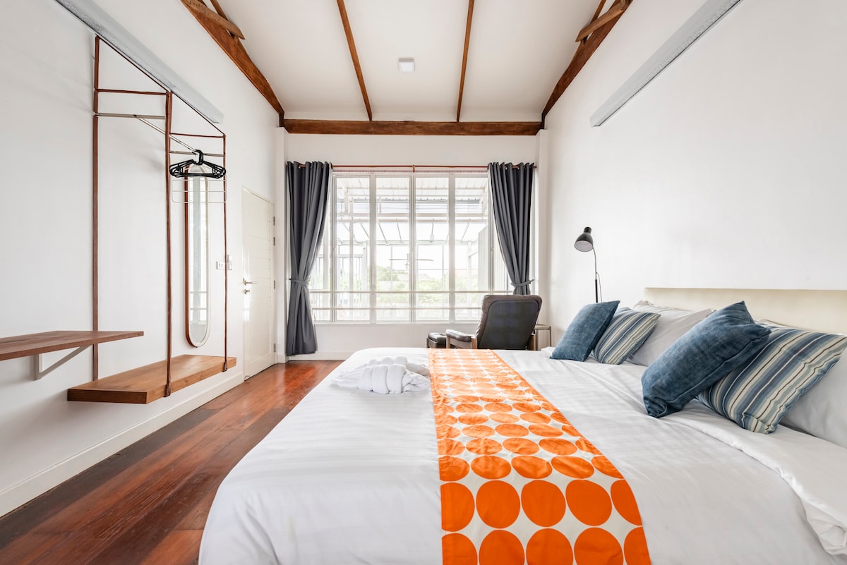 Casă înșiruită modernă, foarte liniștită, cu 3 dormitoare, la 15–20 de minute de BKK. Perfect pentru grupuri de 4–6 persoane și pentru șederi prelungite. Trei paturi king-size de calitate hotelieră, cu lenjerie de pat premium spălată la 60 °C, pentru cel mai bun somn din călătoria ta. Check-in independent non-stop, Wi-Fi de mare viteză, Netflix pe fiecare televizor. Bucătărie complet utilată, mașină de spălat rufe și tot ce ai nevoie pentru a te simți ca acasă. Comunitate securizată, împrejmuită, cu piscină și magazin 7-Eleven la câțiva pași. Acces facil cu taxiul – ușor de găsit, ușor de ajuns. 欢迎长期入住 Bine ați venit pentru șederi lungi.