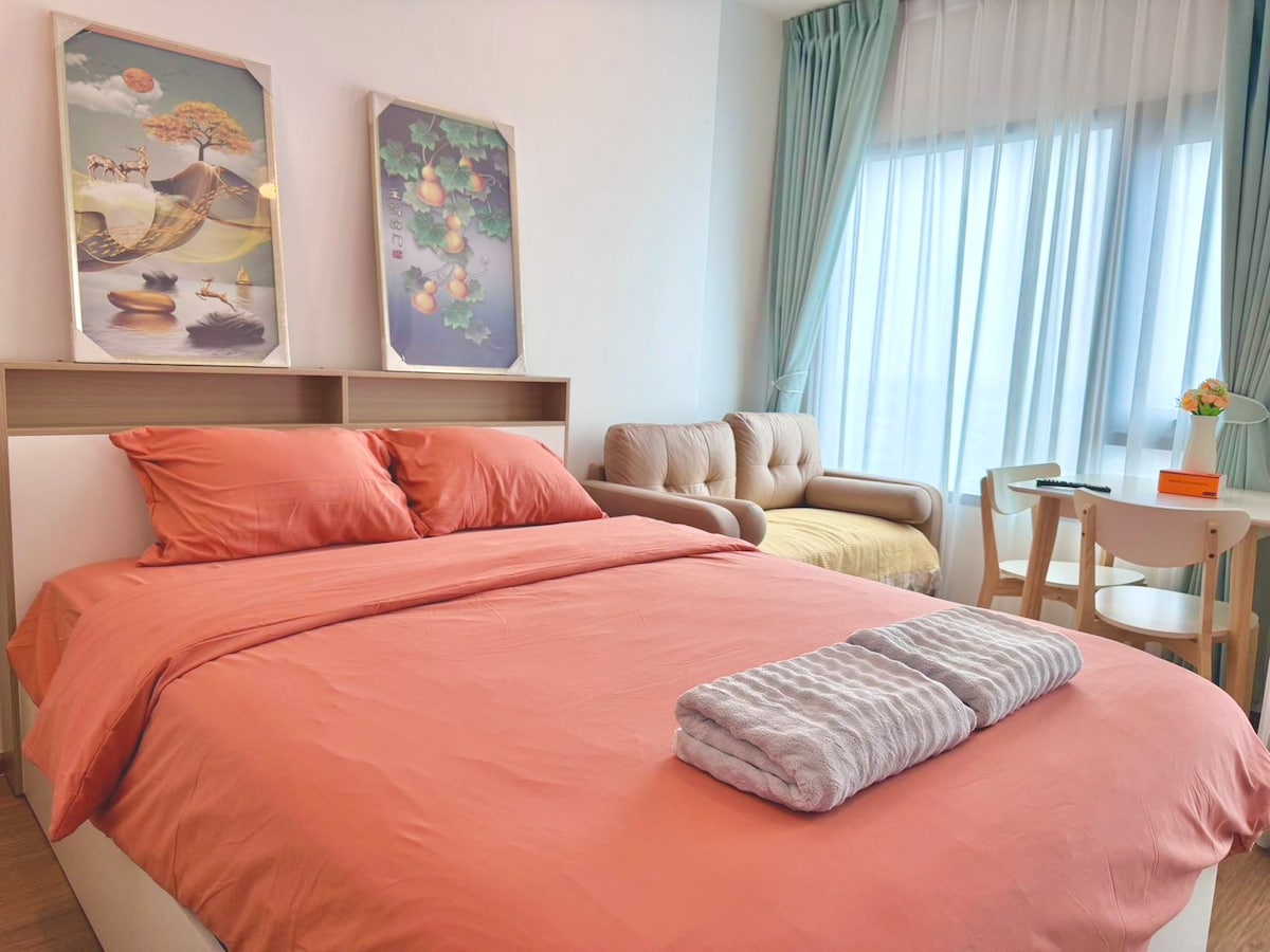 Refugiu urban șic, la câțiva pași de BTS Phra Khanong Bucură-te de confortul modern în acest apartament luminos cu un dormitor, la doar o scurtă plimbare de BTS Phra Khanong — poziționat perfect pentru a explora Sukhumvit sau pentru a lucra din oraș. • Spațiu de locuit luminos, cu ferestre din podea până în tavan • Pat matrimonial de pluș cu draperii opace pentru un somn profund și odihnitor • Wi-Fi extrem de rapid și un televizor inteligent de 55″ (compatibil cu Netflix) — ideal pentru muncă sau relaxare