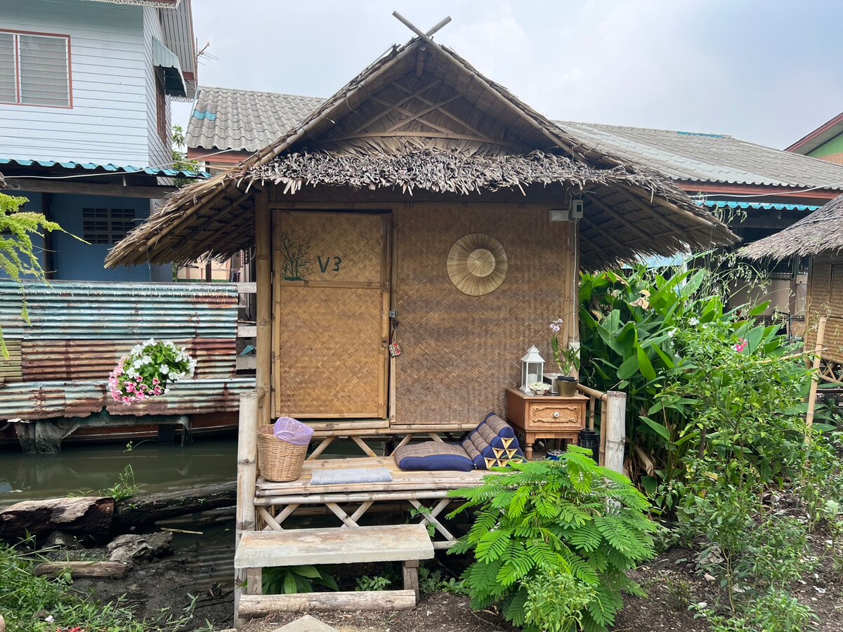 Air Con Hut (baie comună) situată în grădină și lângă canalul Bang Ramat