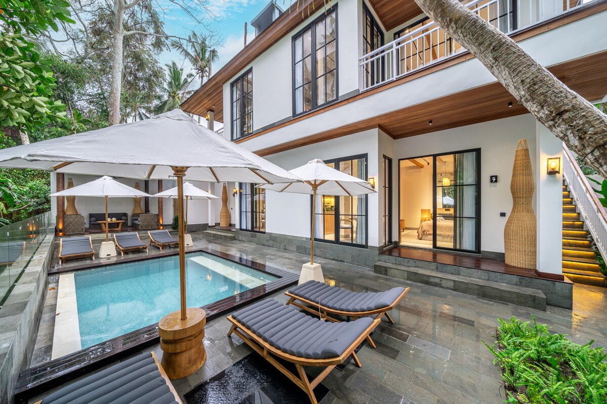 Cel mai bun apartament nou cu 2 dormitoare din Ubud, cu spa, piscină și grădină luxuriantă