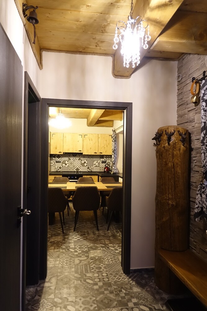 Casa este situată la fața locului, la o distanță de casă, cu propria alee și zonă de parcare. Suntem bucuroși să întâmpinăm oaspeții cu noi pentru maximum 8, dintre care ne gândim la 6 adulți și doi copii cu vârsta cuprinsă între 2 și 12 ani, dacă suntem interesați. Oaspeții pot utiliza, de asemenea, spațiul social din sennik, unde există fotbal de masă, sărituri cu fân și tir cu arcul. Există, de asemenea, o saună disponibilă pentru o taxă de 12,50 EUR/persoană (ceaiul și prosoapele sunt incluse) și o sală de gimnastică de modă veche cu un sac de box - gratuit.