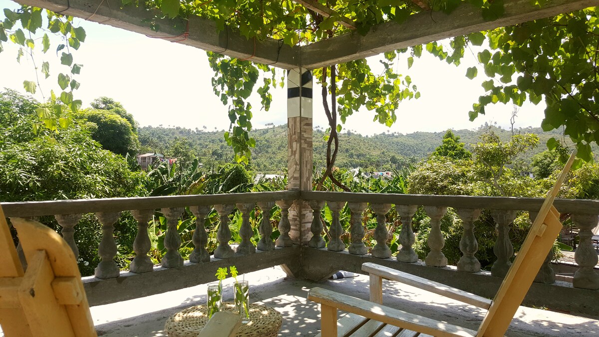 Casă spațioasă înconjurată de natură, situată în fața Golfului Baracoa și foarte aproape de centrul orașului. Are 2 terase, grădină, foișor și curte. Camera are ferestre mari din sticlă cu vedere la grădina laterală și curtea din spate, care îți permit să te bucuri de priveliști frumoase și ventilație excelentă și iluminare naturală, plus o terasă frumoasă unde te poți relaxa, poți lua un mojito și poți gusta un mic dejun și băuturi delicioase. Există Wi-Fi disponibil în întreaga casă și garaj pentru mașina ta.