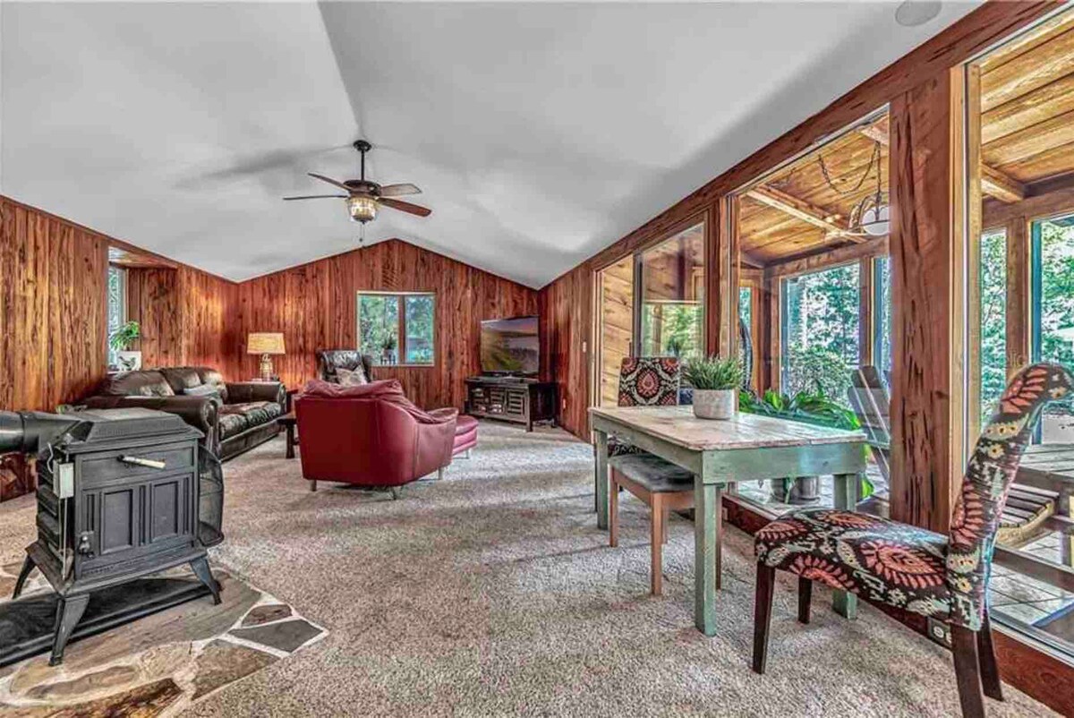 Casa noastră este spațioasă în toate locurile potrivite. Confortabil, cu o atmosferă de lojă, o mulțime de spațiu în curte pentru a sta și a te relaxa și cuibărit în Pădurea Națională Ocala. 4 Natural Springs, Volusia Speedway și râul St. Johns, sunt la 5-15 minute distanță. 20-45 este Daytona Beach, Ormond Beach și Silver Springs Park. Indiferent dacă mergi la pescuit, înoată cu lamantini la Silver Glenn, caiac, drumeții sau alergi în jurul pistei, suntem siguri că vei găsi aventură așteptând . Astor are, de asemenea, opțiuni excelente de luat masa.