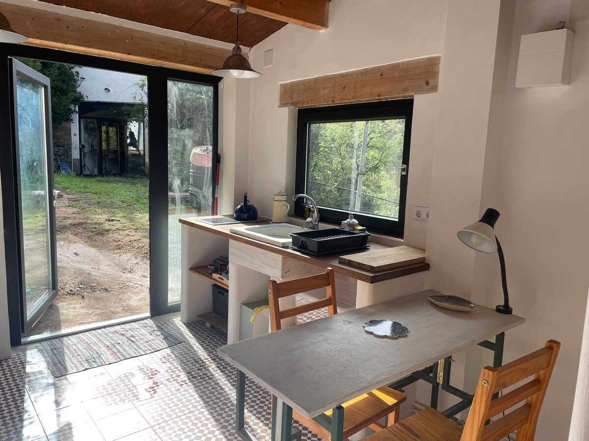 Sus pe un deal mic, casa de oaspeți a unei case tradiționale de 500 de ani, încorporată într-o pădure de 25 de hectare. Casa de oaspeți are o grădină privată, o mini piscină și o intrare independentă. Aer condiționat. Centrul Barcelonei este la numai 20 de minute cu trenul, trenuri la fiecare 6/10 minute, călătorie cu bilet de 1,2 euro, gara este la 3 minute cu mașina, parcare gratuită la gară și casă. Alternativ, centrul orașului se află la 20 de minute de mers cu mașina. Plaja se află la 25 de minute cu mașina. Recomandat cu mașina. Natură, apusuri de soare liniștite și frumoase.