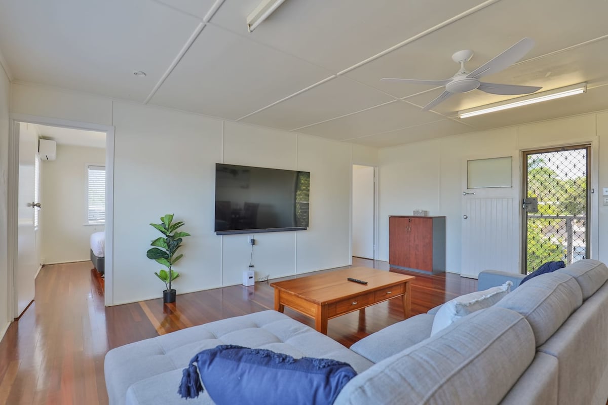 A home that’s calming peaceful & restorative Ideal for business travel .Close to hospitals and city centre. Well equipped kitchen 2xQueen bedrooms with Ceiling Fans &Aircon Garden access 15 minutes to beaches,Mon Repos for the turtles and Marina for Lady Musgrave Cruises. Nearby Shopping Centre IGA, PO,Bottle Shop, Hairdresser, massage therapist, Coffee Shop, Pharmacy, News Agency, Butcher, Medical Centre Botanical gardens are close by with a restaurant, Bert Hinkler house & steam train