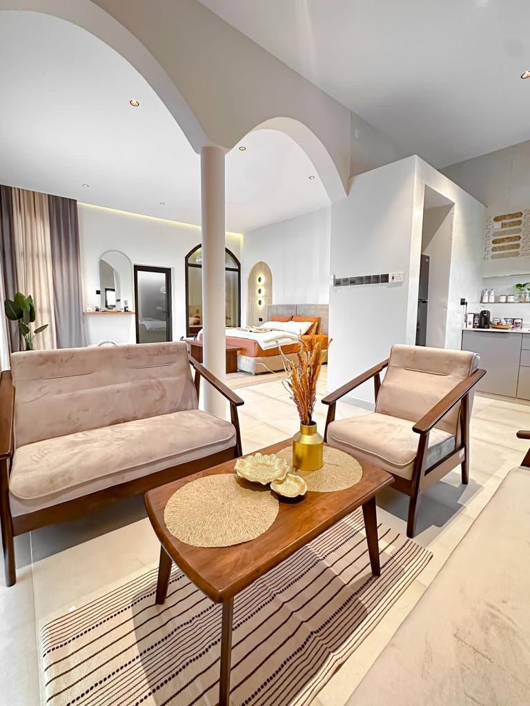 Un complex hotelier dedicat cuplurilor pentru a trăi o atmosferă unică, concepută într-un stil unic și modern pentru a se potrivi relaxării tale în diferite atmosfere Are piscină privată cu living dublu și cameră principală cu vedere la piscină și living Piscina are control al temperaturii Loc liniștit și în siguranță. 40 km de aeroportul Muscat La 35 de minute de aeroport