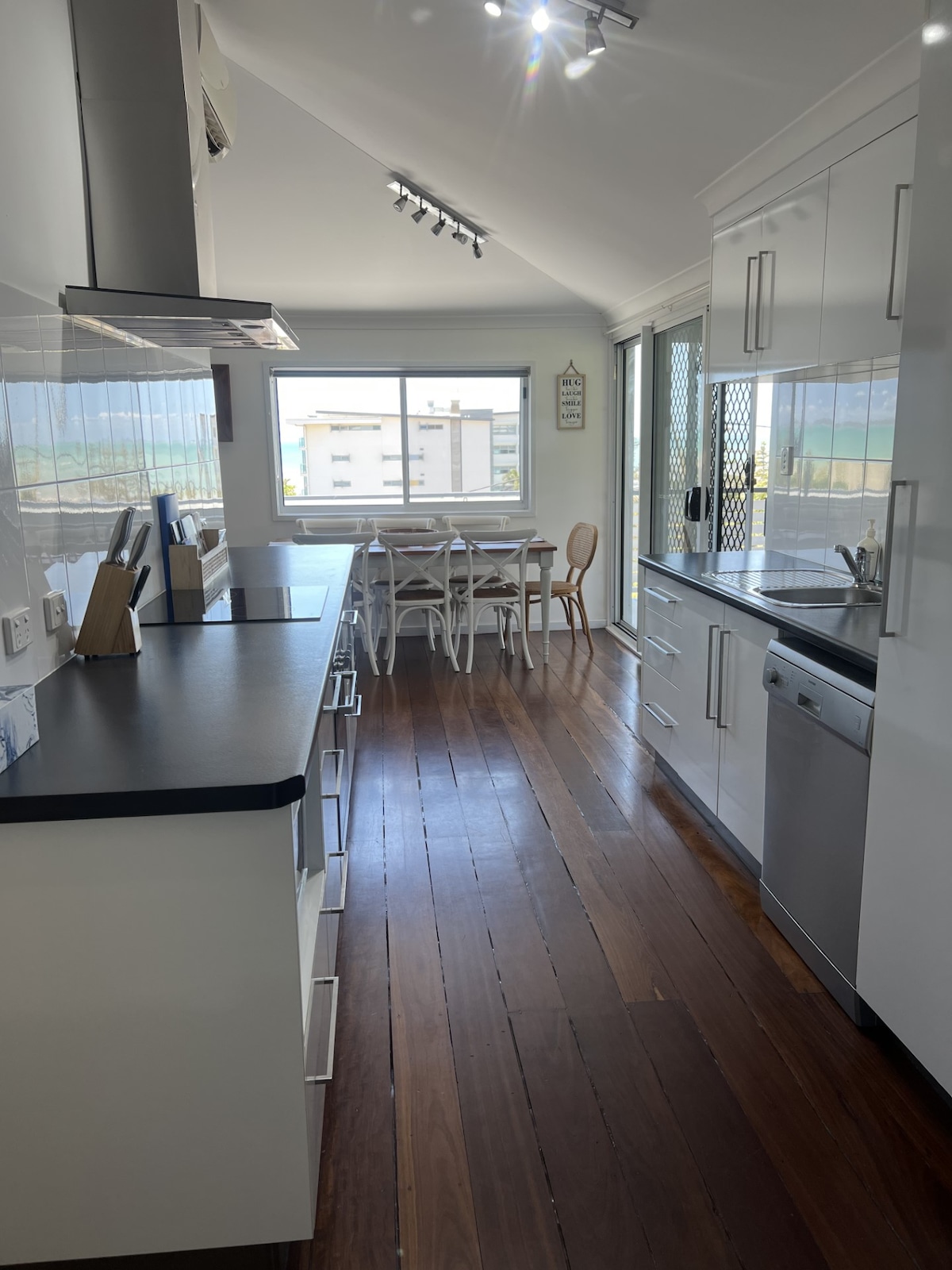 The Sea Flat, Yeppoon, Capricorn Coast, Queensland. Apartament complet renovat, cu două dormitoare, la ultimul etaj, cu vedere la plaja principală din Yeppoon, esplanadă, restaurante, cafenele și magazine. Situat în „Bay Vacationer”, exteriorul clădirii are tot caracterul unei destinații de vacanță retro din 1960, în timp ce interiorul se mândrește cu o nouă atmosferă sofisticată și modernă de coastă. Perfect pentru cupluri sau pentru întreaga familie, fie pentru o escapadă de weekend, fie pentru o escapadă mai lungă pe litoral.