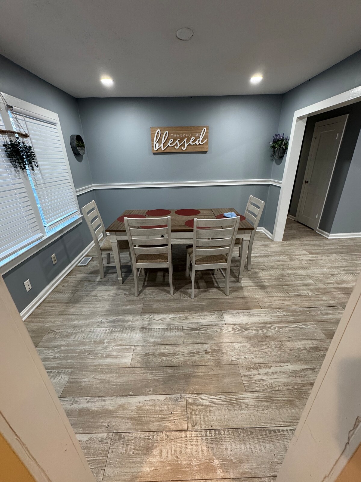 Familia ta va fi aproape de tot atunci când stai în această locuință din centrul orașului Cartersville. Mergi pe jos până la toate magazinele și restaurantele din centrul orașului. Relaxează-te dimineața bând cafea pe veranda atașată. Parcare spațioasă în spatele casei, care este privată și sigură. Configurație prietenoasă cu familia, cu o canapea secțională uriașă, care se trage într-un dormitor matrimonial complet, cu toate lenjeriile și pernele necesare. Configurarea cafenelei, spațiu de lucru dedicat cu imprimantă, Wi-Fi wireless și televizoare în fiecare cameră.