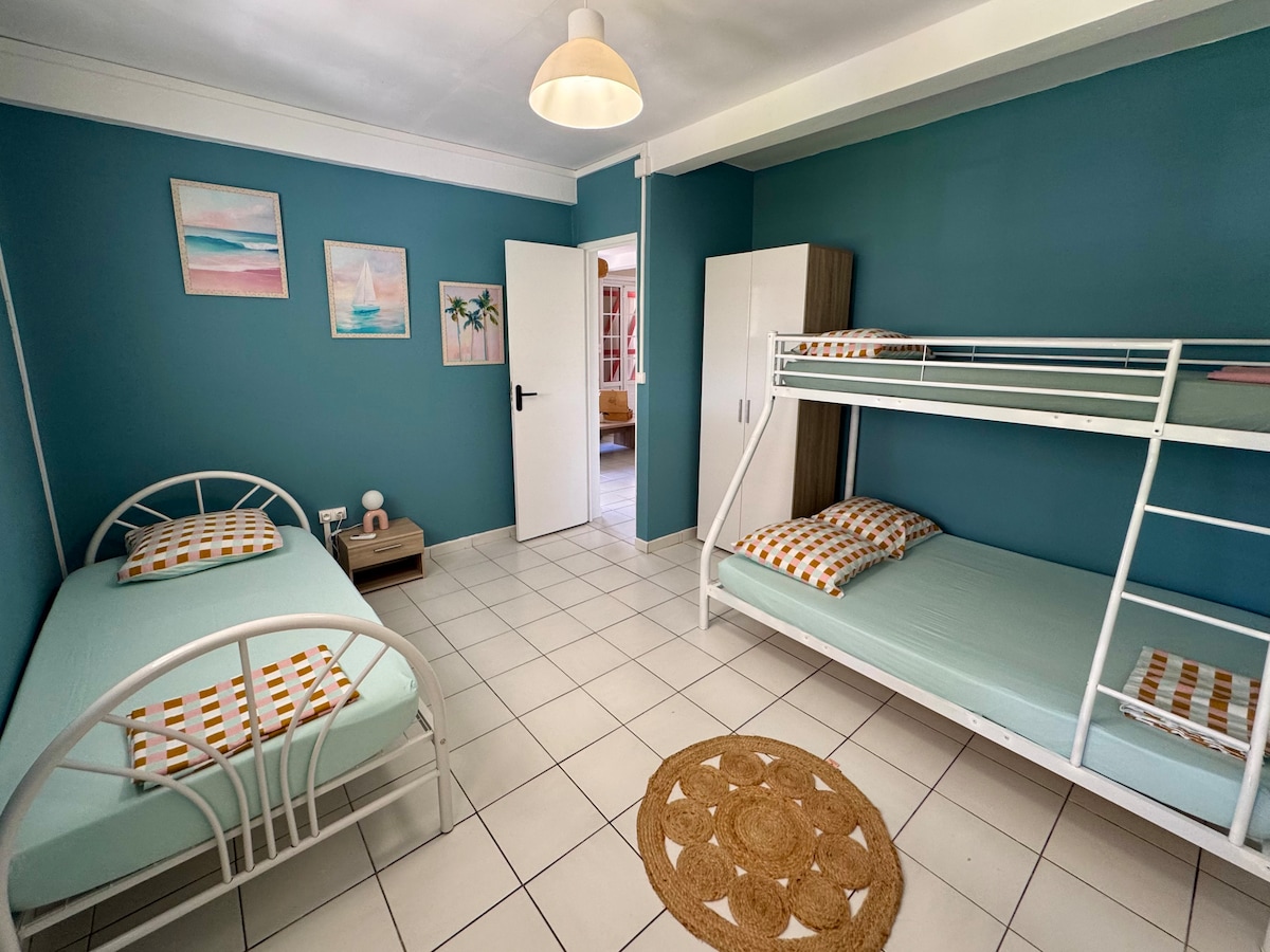 Studio au dos de notre villa, avec accès par des escaliers. Accueil proposé ou accès autonome. Petite cour agréable aménagée pour se détendre. Studio neuf et charmant avec canapé lit BZ, mini salon, espace déjeuner et kitchenette bien équipée. Pour les amateurs du tourisme vert, vous serez à 10mn en voiture de la Soufrière, des rivières et des sentiers de randonnées. Plage de Rivière sens à 15 mn. Hôpital et centre ville à 10mn. Havre de paix et tranquillité après vos sorties.