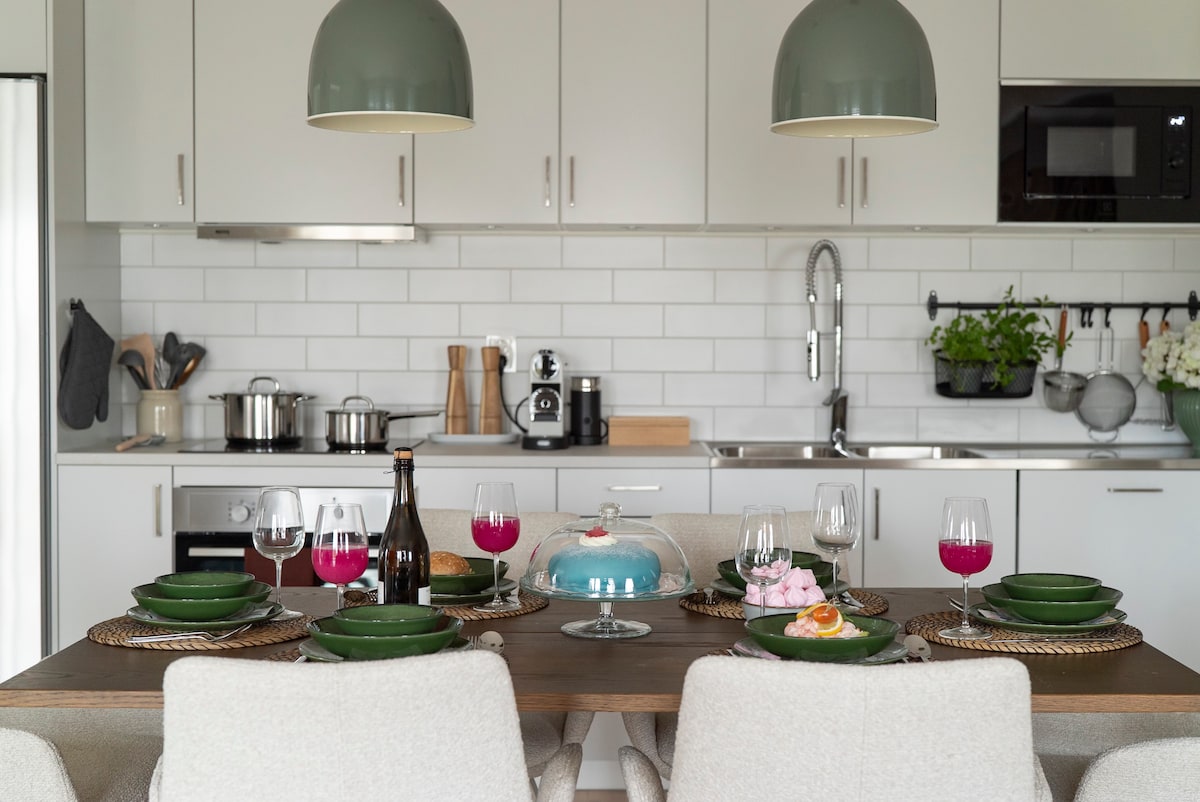 Bucură-te de o ședere vibrantă în acest apartament tineresc, cu 3 dormitoare, la primul etaj, perfect pentru prieteni și familie. Spațiul are imprimeuri artistice elegante și o masă distractivă cu mai multe jocuri, care se transformă din fotbal de masă în biliard, hochei și nu numai. Relaxează-te pe terasa fermecătoare cu cafeaua de dimineață sau un pahar de vin la apus. La doar 12 minute de portul Båstad și la 5 minute cu mașina de cel mai apropiat magazin alimentar, este baza ideală pentru distracție și relaxare.