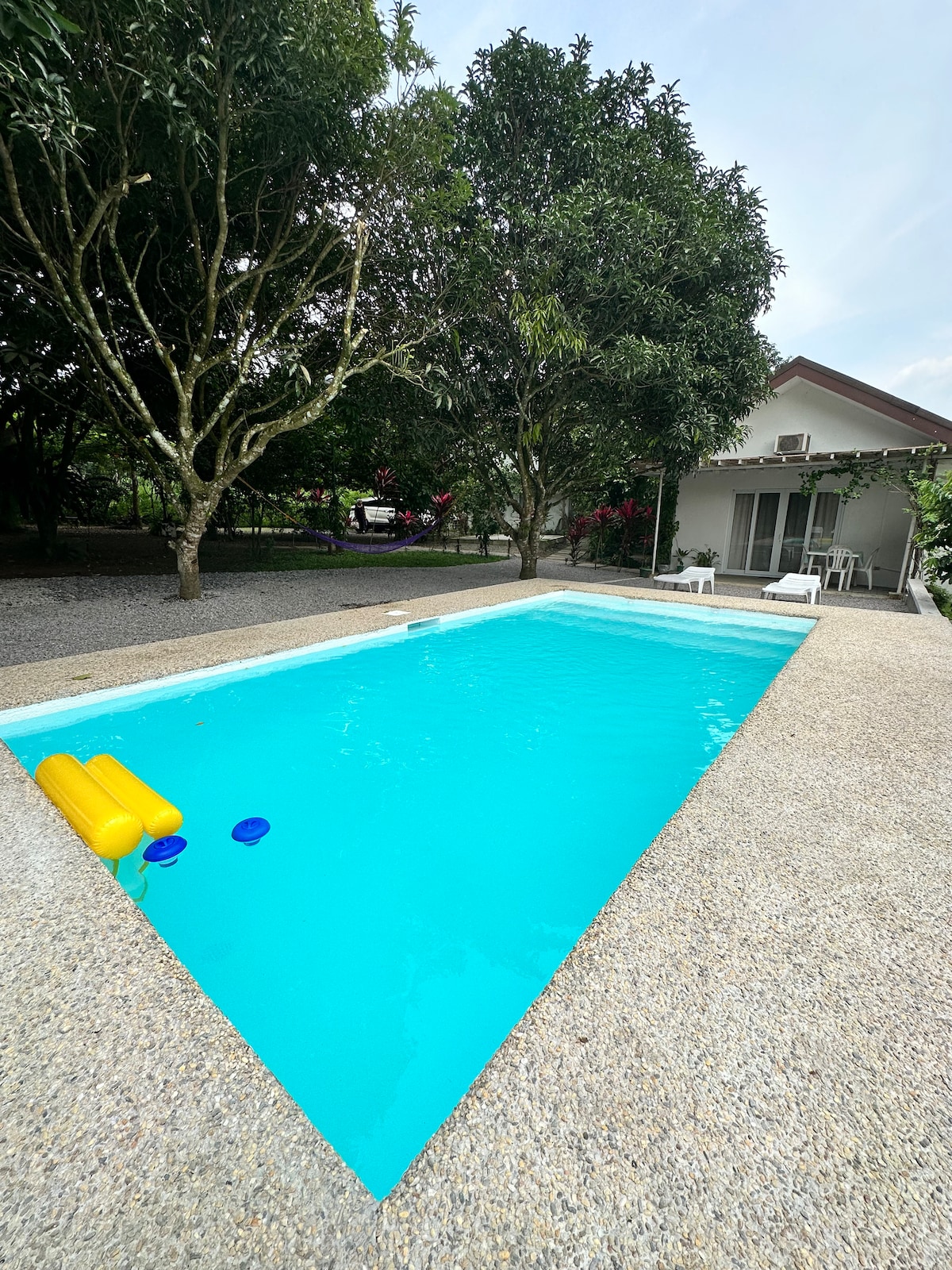 La numai 2 ore distanță de Metro Manila, relaxează-te cu întreaga familie la această casă privată liniștită de țară (doarme maximum 12 persoane), unde ai spațiu să te plimbi, să te joci, să înoți în piscina privată, cu facilități complete de gătit, o groapă pentru grătar, Wi-Fi de mare viteză, leagăne și hamace sub salcâm.