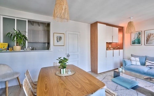 Apartament de lux renovat în Paris 17, între Monceau și Batignolles. Luminos, liniștit și elegant, cu tavane înalte, parchet din os de hering și finisaje de calitate. • Pat matrimonial + canapea extensibilă • Bucătărie complet echipată, cu bar de marmură • duș italian Un adevărat hotel tip boutique într-o zonă căutată. Perfect pentru cupluri, familii sau șederi de afaceri. Wi-Fi rapid și Smart TV incluse.