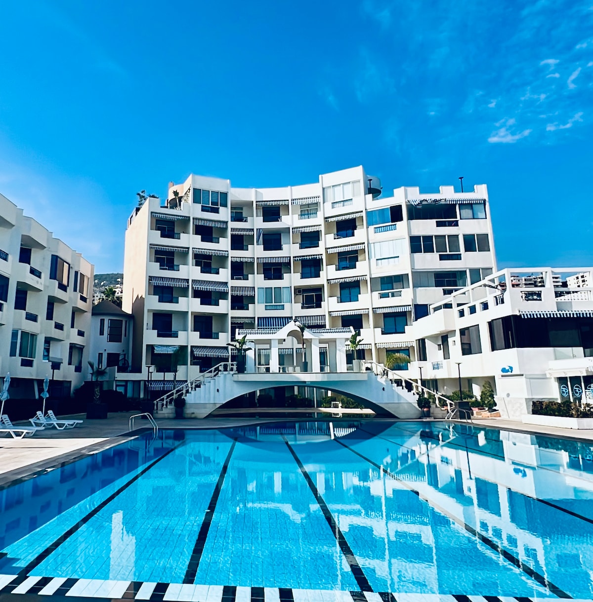 Adu-ți familia în acest loc minunat cu mult spațiu pentru distracție, cu o piscină în complexul Batruna Parc. Distanță de mers pe jos până la centrul Batroun și vechiul souk și plajă. Apartament complet mobilat, cu 3 camere, cu 2 băi și un living spațios și o sufragerie, deschis spre o terasă mare cu vedere la piscină. Bucătărie echipată. De asemenea, vă putem ajuta să obțineți lecția privată de surfing sau un antrenor personal pentru antrenamentul de morming. Notă: sunt permise maximum 6 persoane la piscină!