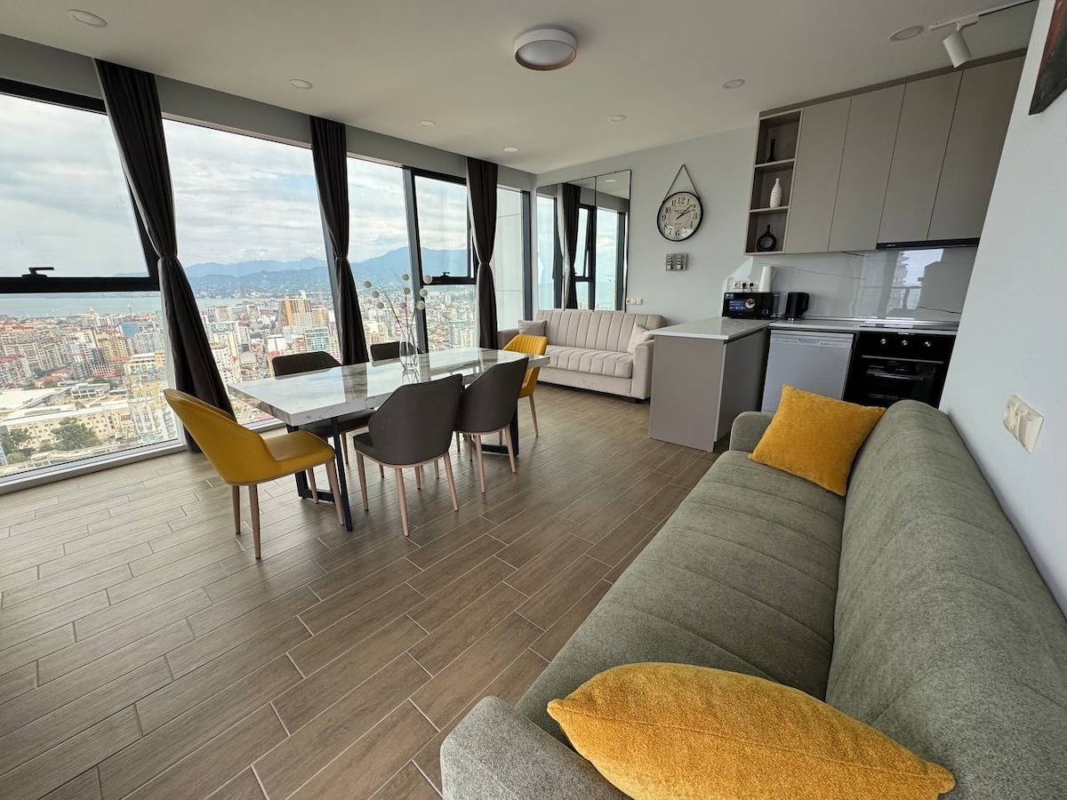 Un apartament panoramic (50 mp) la etajul 15 al complexului de apartamente Orbi Sea Towers, situat la 50 m de plajă. VEDERE ULUITOARE la mare de la două balcoane și ferestre PANORAMICE din podea până în tavan. Bucătărie complet utilată, toate aparatele, aer condiționat, Wi-Fi gratuit și TV.