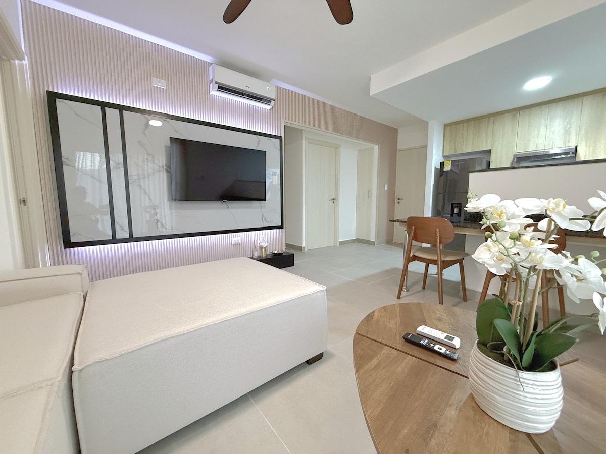 Evadează în confort și comoditate. Apartament spațios și frumos, cu 2 dormitoare și 2 băi, cu o zonă de living deschisă și o bucătărie complet utilată. - Dotări incluse: electricitate, Wi-Fi de mare viteză, apă caldă și aer condiționat în toate camerele, ecrane ferestre, balcon și grătar. - Locație excelentă: la doar câțiva pași de o plajă cu nisip alb, foarte aproape de restaurante, magazine, atracții și la numai 25 de minute de Aeroportul Punta Cana. Te putem ajuta cu orice cerere și cu transferurile aeroporturilor. Rezervă acum!