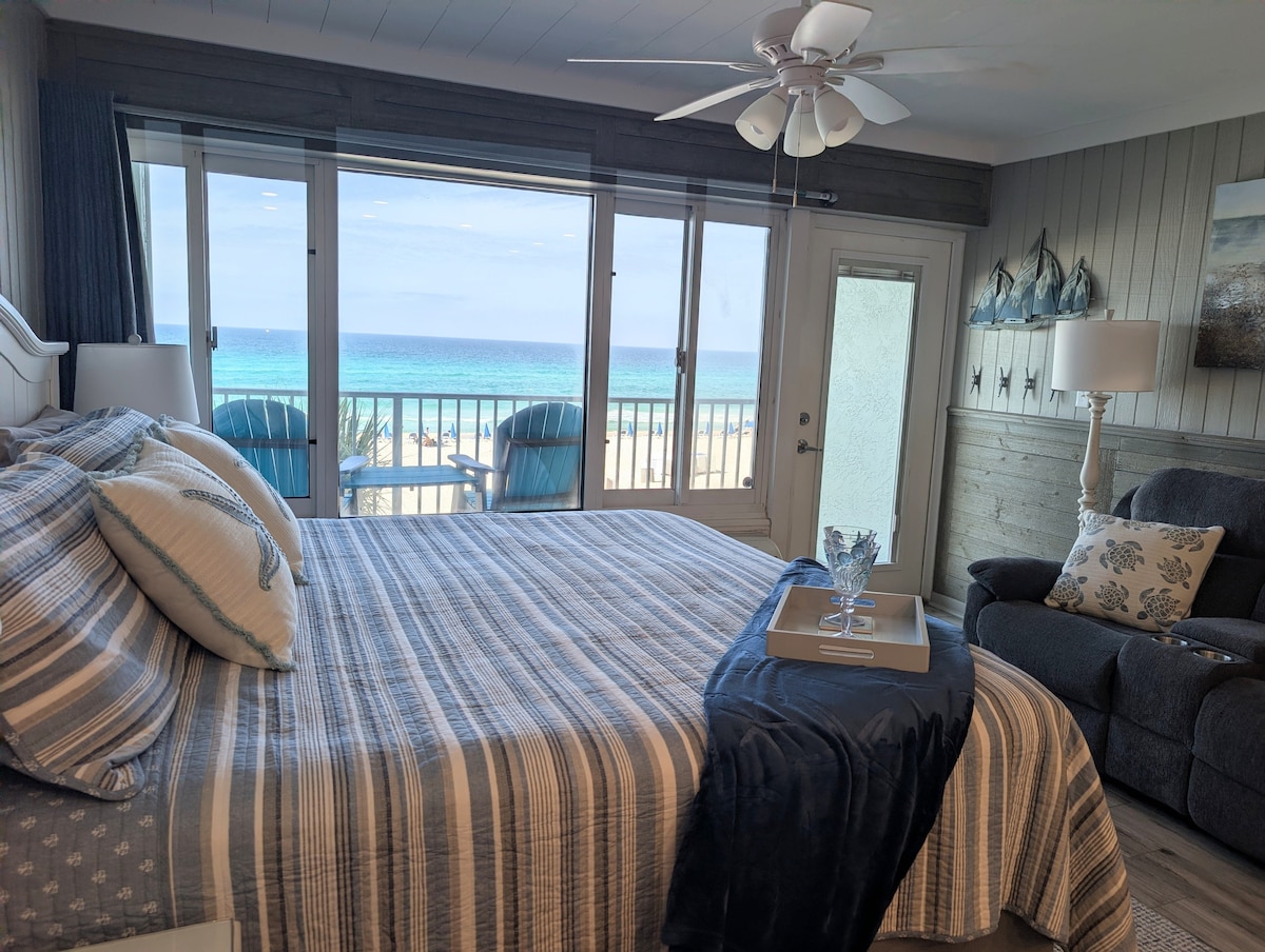 FĂRĂ TAXE SUPLIMENTARE DUPĂ REZERVARE! Trezește-te cu priveliști spre golf de pe BALCONUL TĂU PRIVAT DE PE MALUL MĂRII în acest apartament fermecător, cu înălțime redusă. Pășește direct pe nisipul alb ca zahărul și apele de smarald chiar în fața ușii tale. Bucură-te de o piscină încălzită sezonier pe tot parcursul anului, la câțiva pași de Pier Park pentru mese, cumpărături, atracții și viață de noapte. Cauți date sau aspect diferite? Dețin 5 apartamente în această clădire. Dă clic pe profilul meu de gazdă, apoi derulează în jos pentru a vedea toate anunțurile mele.🌴