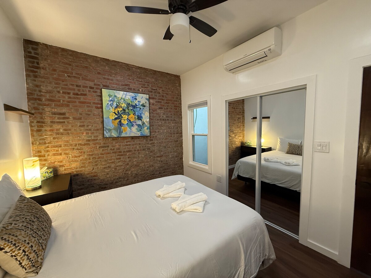 Bine ai venit în casa ta elegantă, departe de casă, în inima orașului Midwood, Brooklyn. Această suită atent renovată cu două dormitoare îmbină finisajele moderne, confortul în stil hotelier și toate elementele esențiale pentru o ședere fără probleme, indiferent dacă ești aici pentru muncă, joacă sau aventuri în oraș. Bucură-te de un spațiu luminos, bine amenajat, cu lenjerie de pat de pluș, Wi-Fi de mare viteză, o bucătărie complet utilată și facilități de baie inspirate de spa. Suntem la proprietate, dacă este necesar, respectându-ți pe deplin confidențialitatea.