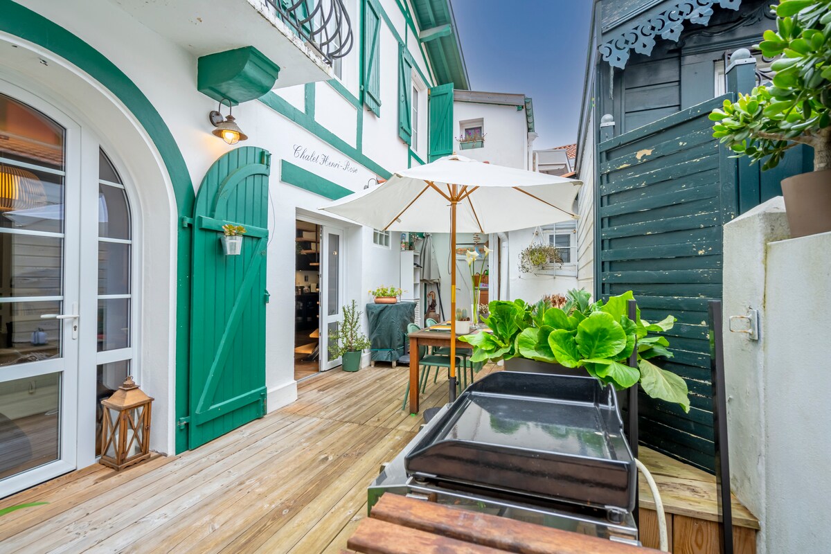 Biarritz - Casă foarte frumoasă în centrul orașului, liniștită într-o fundătură privată, amplasată într-un cadru verde, la capătul unei mici pasarele pietonale care deservește 2 case. Vino și bucură-te de acest colț relaxant pentru o vacanță bună cu familia sau prietenii. Această casă poate găzdui maxim 4 persoane. Are 3 dormitoare și un spațiu în aer liber. Casa este situată la 15/20 de minute de mers pe jos de centrul orașului și de plaje, dar un transfer gratuit se află la mai puțin de 2 minute distanță.
