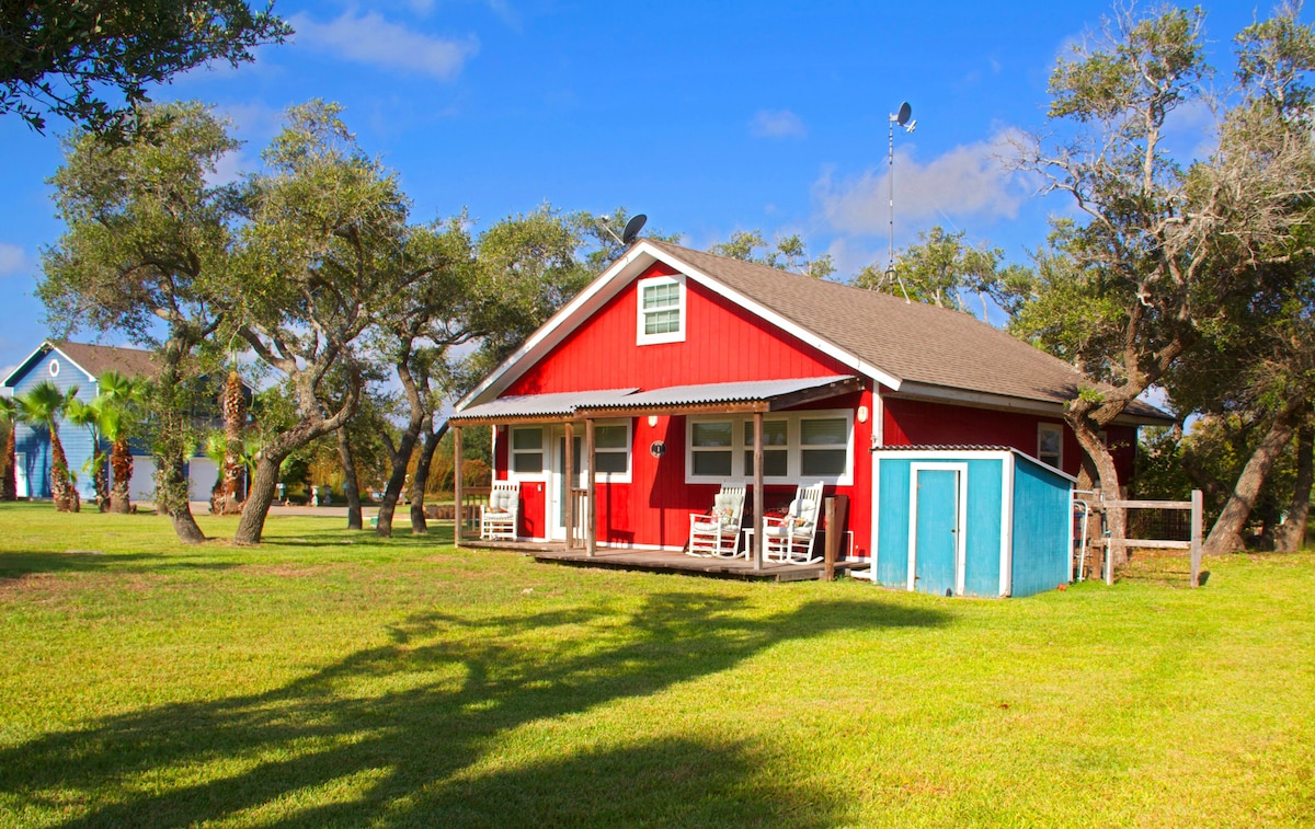 Nestled in Rockport, Texas, just outside the city limits, this 384 sq ft tiny home offers a very compact layout with rooms close together—ideal for guests familiar with tiny home living. Please review photos. Tucked under huge oak trees, it features a fire pit for relaxing after a day at the beach. Though small, it includes full-size amenities: refrigerator, gas range, dishwasher, queen beds, and a spacious shower! (Nightly rates already include applicable local hotel and venue taxes)