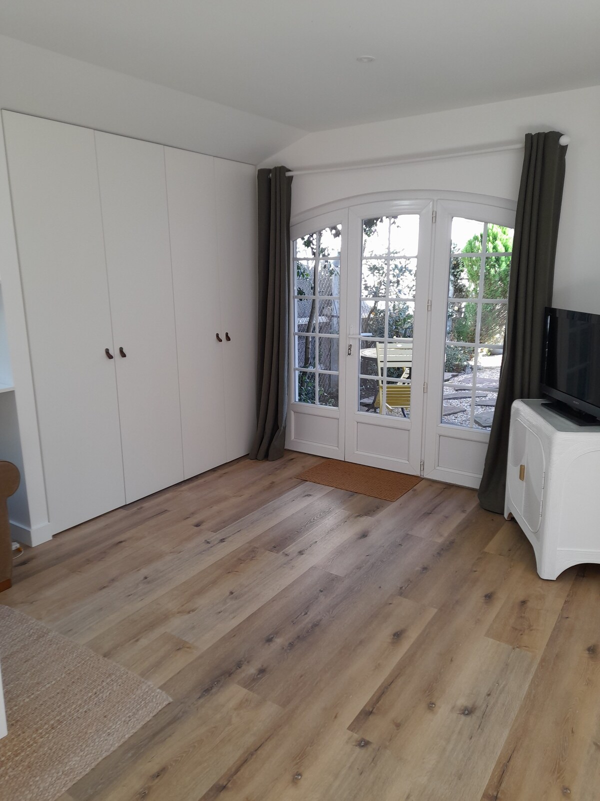 Situat în grădina casei mele, ai acces prin grădină la această casă frumoasă, de 19 m2, într-un cadru verde, cu o terasă privată mobilată, însorită și în intimitate completă. Este doar o cameră, este mică, confortabilă, confortabilă și funcțională, totul este acolo! Pat Murphy, baie cu duș și toaletă. Aer condiționat reversibil. Rulouri la toate ferestrele. În frigider și dulapuri veți găsi micul dejun și produse de bază