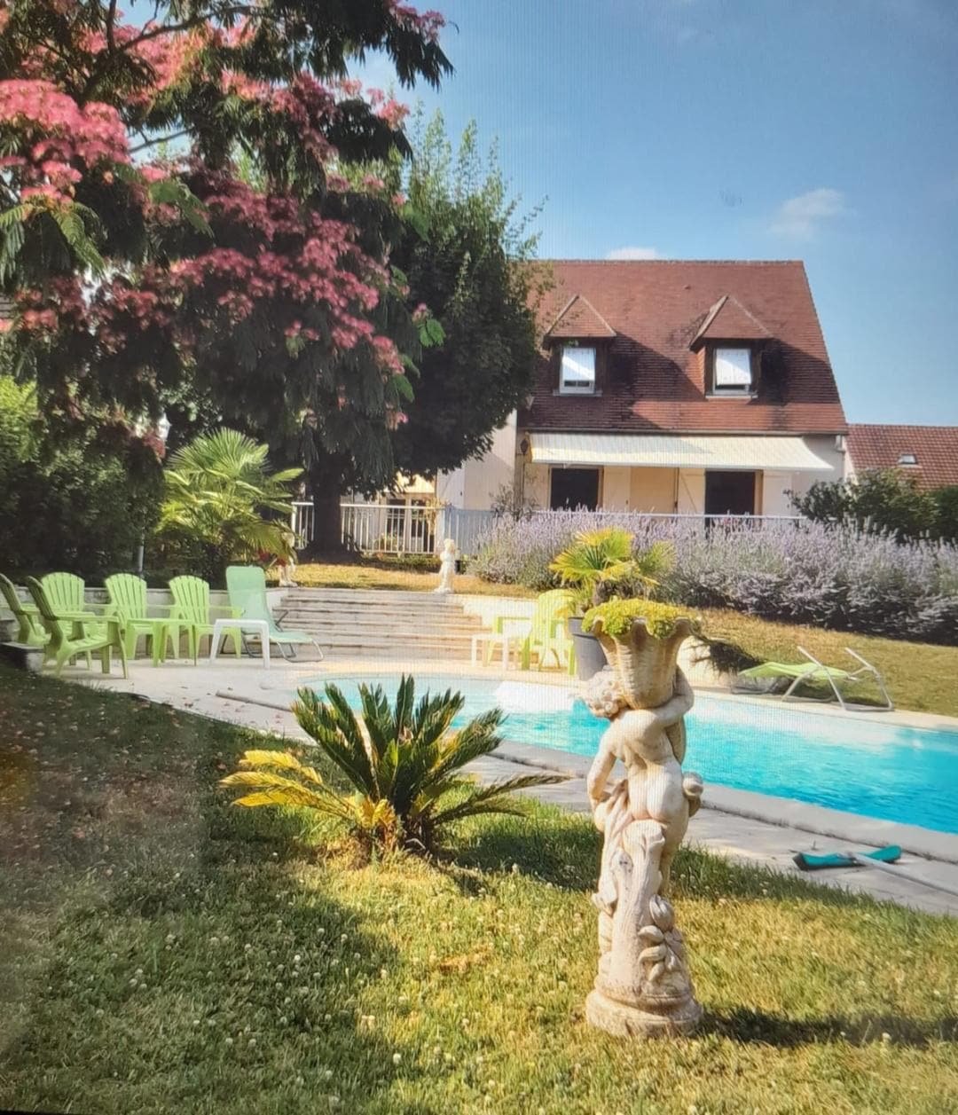 Maison contemporaine avec de grandes pieces tres lumineuses,avec grande baies vitrees prévu pour recevoir 8 adultes 1 enfant de 12 ans maximum et 1 enfant 3 ans maximum Chambres climatisées Dans son écrin de verdure Avec un grand terrain privee Équipé d'une piscine priveé chauffée par pompe a chaleur Dans un endroit calme A proximite des chateaux de la Loire Chambord ,Cheverny,Chenonceau,Chaumont , Amboise , zoo de beauval