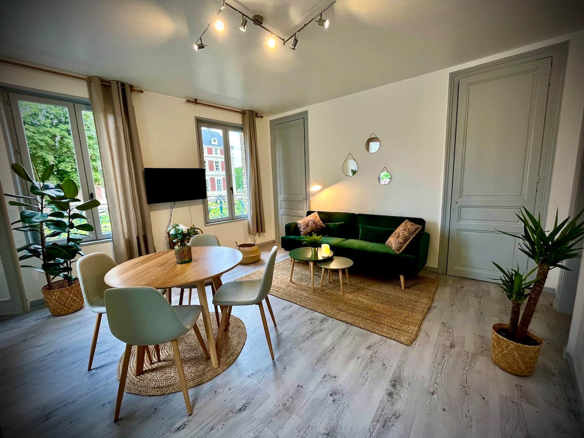 Apartament spațios, luminos și foarte liniștit, de 65 m2, situat pe o curte în inima centrului pietonal istoric din Rouen. Cazare confortabilă, curată și bine izolată fonic datorită geamurilor duble. Are un dormitor cu lenjerie de pat de calitate, un living spațios plăcut, o bucătărie deschisă complet utilată și o baie cu cadă. Ideal pentru o ședere confortabilă pentru două persoane, liniștită, într-o locație centrală excepțională. Curățenie profesională inclusă.