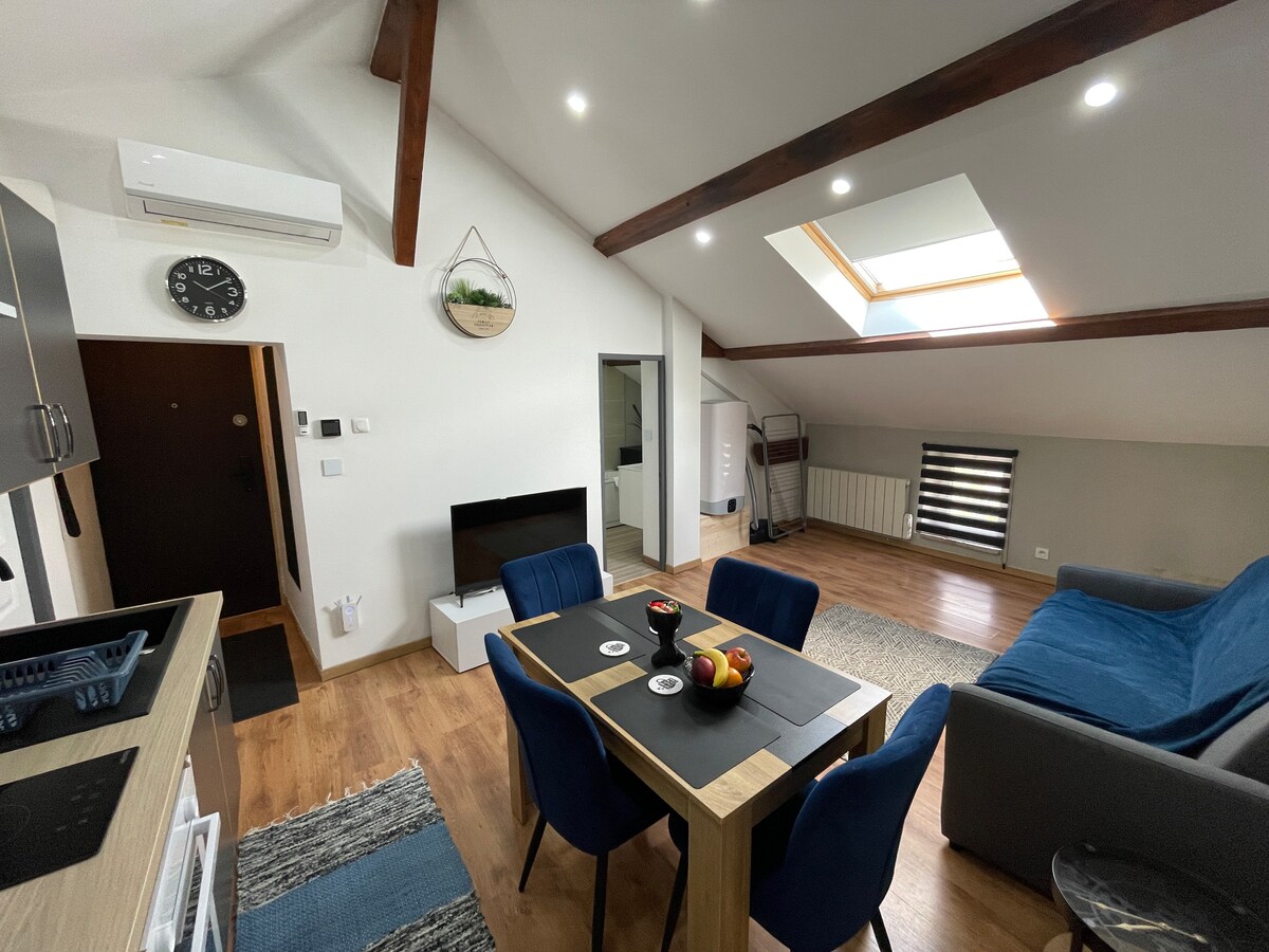 Welcome to your next urban getaway, in the vibrant Croix-Rousse district of Lyon! This exceptional apartment, freshly renovated and meticulously decorated, opens its doors to you for an unforgettable stay. Magical View of Lyon: Perched in a privileged location, this apartment offers a spectacular view of the entire city. Jacuzzi Duo: Imagine yourself immersed in a relaxing bath with a Japanese atmosphere. Our space is designed for unparalleled moments of relaxation.