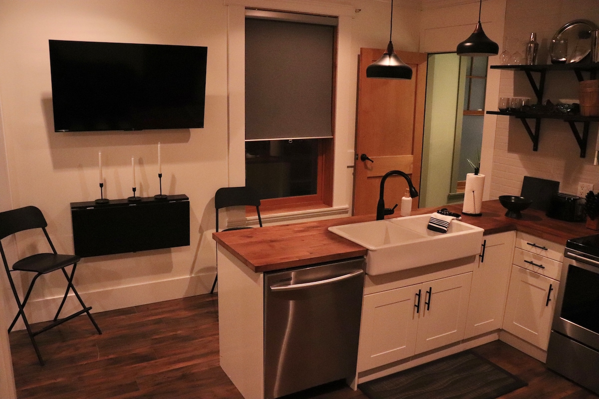 Bine ai venit în căsuța noastră! Situat pe o stradă liniștită, mărginită de copaci. Spațiul este locul perfect pentru relaxare în timpul vacanței, în oraș pentru un eveniment sau o funcție sau pentru a vizita familia și prietenii . Ne aflăm aproape de centrul orașului, la trei străzi de mers pe jos. O să-ți placă magazinele, buticurile și locurile de luat masa. Sau bucură-te de plimbare și de orașul prietenos.