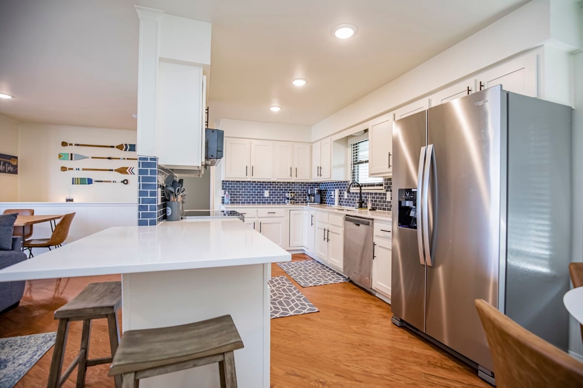 Ești gata pentru o săptămână de relaxare sau un weekend lung pe lac cu familia sau familia extinsă? Acesta este locul tău. Front de apă cu acces direct la apă. Acordă o atenție deosebită aspectului dormitorului cu 3 dormitoare matrimoniale și un pat supraetajat pentru copii cu 2 paturi twin peste paturi complete. Divertismentul include un difuzor BT, o bară de sunet, 2 jocuri Arcade, un joc de baschet și 4 caiace disponibile pentru croazieră prin golf sau pește. Această proprietate este, de asemenea, foarte bine situată pentru MTBikeri care doresc să exploreze zona Hobbs sau