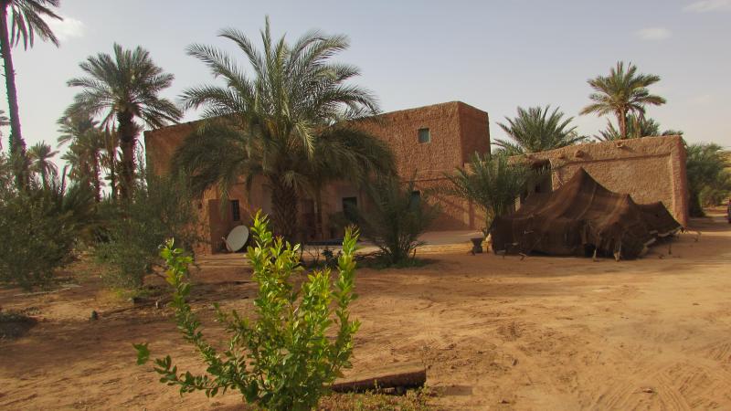 Casă tradițională din lemn de palmier cu nămol și date complet renovată și echipată cu standuri de lux cu dormitoare duble dotate cu saltele ortopedice, hamam, cort interior, bucătărie echipată, șemineu, vatră etc. Casa este situată în Ksar (oraș fortificat vechi de peste 5 secole) în oaza Taghit, blocată între dunele din vestul Grand Erg (mare ca Austria) și Munții Atlas, ambele la o plimbare de două minute.