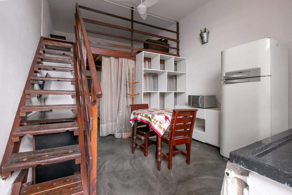 Suntem în cartierul Jardim Paulista, lângă parcul Ibirapuera și gimnaziul. Studioul de 45m2 are un pat dublu și o canapea extensibilă, o baie, o bucătărie mică, o masă și aer condiționat. Oferim o saltea suplimentară, dacă este necesar, în plus față de canapeaua extensibilă. Proprietatea noastră este împărțită în 3 case care au o intrare comună. Consultă descrierea spațiului pentru a înțelege infra. Mediul nostru este familiar, nu închiriem pentru petreceri. Citește recenziile de la ultimii oaspeți