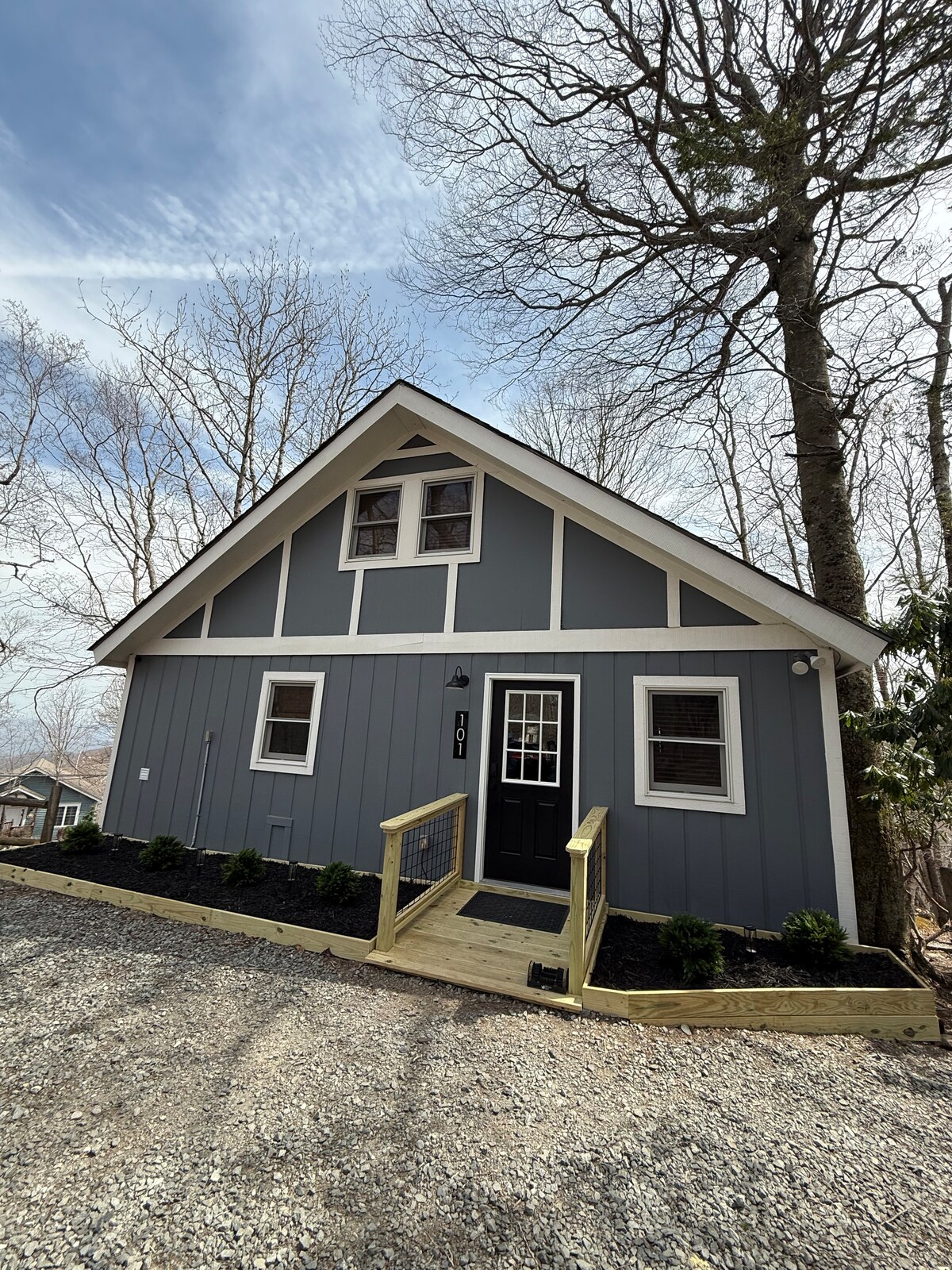 Renovat superb! Șemineu cu gaz din piatră. Electrocasnice noi din oțel inoxidabil. Șemineu nou cu gaz. Duș. Terasă lungă cu mobilier de exterior confortabil. Cadă mare cu hidromasaj în camera principală din apartament. Bucătăria deschisă și camera de zi au vedere la terasa mare pentru intimitate. Parchează 3 mașini în parcarea plată. 1 sticlă de vin gratuită * te rugăm să reții că această cabană este privată numai cu vedere împădurită și peste drum de Beech Mountain Club , convenabil pentru concerte, berărie, ciclism montan și schi.