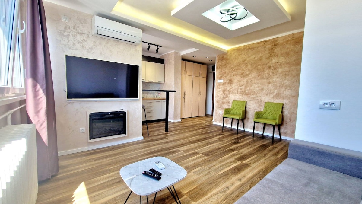 Studio modern în noul Belgrad | Centru de afaceri + garaj gratuit Cazează-te într-un studio elegant, complet echipat, în cartierul de afaceri din Noul Belgrad, ideal pentru călătorii de afaceri și exploratorii orașului. Bucură-te de check-in independent, recepție non-stop, Wi-Fi gratuit de mare viteză și un garaj privat. Mergi pe jos până la birouri, centre comerciale și restaurante de top, cu acces facil la râul Sava, aeroport și centrul orașului. Rezervă acum pentru o ședere fără probleme și fără probleme!