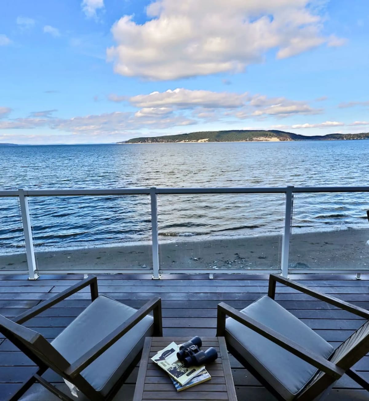 Bine ai venit la WhidbeyBeachHouse, o escapadă pe plajă cu priveliști uluitoare ale oceanului și munților. Situat pe o plajă privată, cu o punte înconjurătoare, perfectă pentru a privi fauna sălbatică, răsărituri, apusuri de soare și stele. Langley „Village by the Sea”, Bayview & Freeland sunt toate la 15 minute de mers cu mașina de restaurante, săli de degustare, magazine și galerii. Casa are 3 BR, 2 BA, birou dedicat/sală de yoga, televizoare de 65" și 42" cu fuboTV (140+ incl sport), WiFi rapid, jocuri de societate și multe altele. @WhidbeyBeachHouse pe IG/FB/TikTok