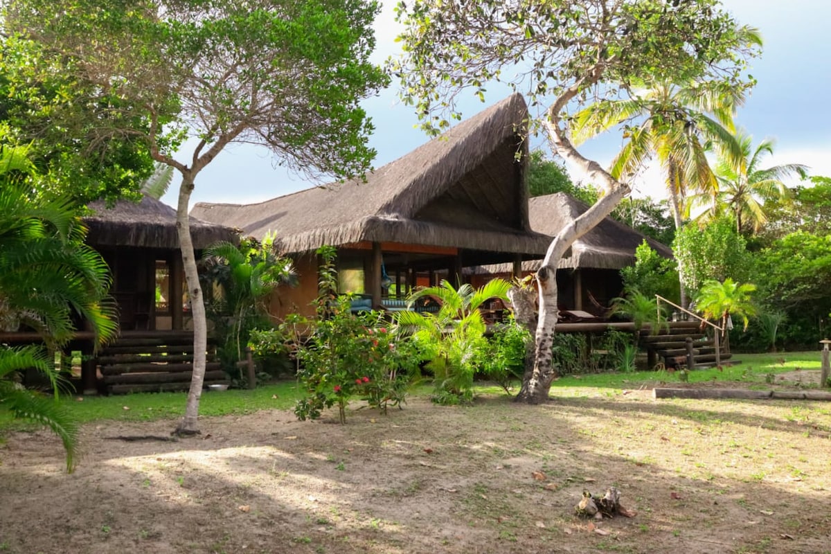 Casa Caxandó - Pousada Colmeia. Bine ai venit la Pousada Colmeia, situat pe plaja Santo André! Aici vei găsi exuberanța naturii, liniștea, ospitalitatea și sustenabilitatea. Aceasta este casa principală a Pousada și capacitatea sa totală este de până la 08 oaspeți., fiind (1 cuplu și 2 copii) în suita superioară cu terasă și vedere la mare