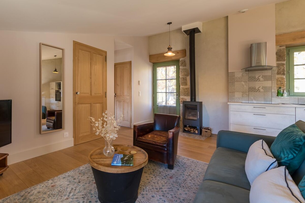 Eco-gîte in the heart of the Monts d'Ardèche regional natural park, a place where you can relax, enjoy nature, sought after by hikers and mountain bikers, a place of comfort and well-being with multiple activity options. 3.5 km from Saint-Sauveur-de-Montagut with all shops, Dolce Via cycle path (90 km), kayaking, swimming beach in the La Guinguette river, Ardelaine living museum, villages of character in Ardèche and multiple hikes and nature outings .