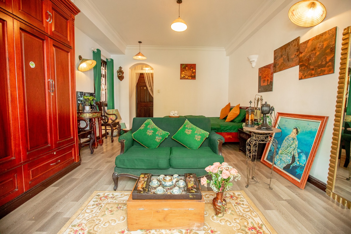 **Este permisă numai fotografierea sau videografia portabilă: NU sunt permise trepiede, vă rog, acestea zgârie podeaua** Ferestrele mari au vedere spre o stradă mărginită de tamarind, mărginită de copaci și de arhitectura colonială franceză, la doar câțiva pași de inima celui mai vibrant oraș din Vietnam. - să stai în apartamentul meu de la etajul 3 ( fără lift ), într-un cartier liniștit și curat. - Apartamentul poate găzdui confortabil 2. - Un pat matrimonial cu saltea confortabilă. - Un televizor Android de 55 inch cu un sistem de difuzoare frumos vă oferă o ambianță bună pentru filme sau pentru a vă relaxa prin muzică noaptea. Chromecast și Apple TV 4K sunt disponibile pentru utilizare. - Un iMac de 22 inch este disponibil pentru a căuta informații cu internet de mare viteză. - Bucătăria este complet aprovizionată cu aparate de cafea, ceai și bucătărie pentru a permite mese gătite în casă cu vase, farfurii, cuțite , furculițe. - O mașină de spălat/uscat, de asemenea, gata. Transport la locuința mea: - Taxi: de la Aeroportul Internațional Tan Son Nhat, iei un taxi până la Nguyen Hue Street (cartierul 1, HCM City) și ești la 1 minut distanță de locul meu. - Clădirea de pe strada „ 90 Nguyաn Huệ” până la locuința mea este plină de cafenele tip boutique și galerii de artă. Fă-ți timp să te bucuri de câteva esențe ale orașului. - Autobuz: dacă iei în considerare utilizarea autobuzelor publice, mergi la autobuzul 109 și ajungi la stația Ben Thanh, atunci este la aproximativ 5 minute de mers pe jos de locuința mea. Toate echipamentele și facilitățile sunt puse la dispoziție pentru utilizare. Lucrez în industria F&B și sunt fotograf independent de ani de zile în HCM City; astfel, nu ezitați să vorbiți cu mine sau să petreceți timpul într-o cafenea pentru a discuta despre bucătăriile locale, artele frumoase, fotografie în eventualitatea în care ați putea fi interesat. Ferestrele mari au vedere peste o stradă aglomerată de copaci și traversează arhitectura din epoca colonială franceză, la doar câțiva pași de inima celui mai vibrant oraș din Vietnam. Clădirea în sine este plină de cafenele de tip boutique și galerii de artă. Stai literalmente în inima orașului Ho Chi Minh. 3 minute până la Bitexco Financial Tower, 10 minute până la stația centrală de autobuz Ben Thanh și taxiurile sunt chiar în fața ușii. Pregătește-te să explorezi Saigonul – Perla Orientului Îndepărtat!