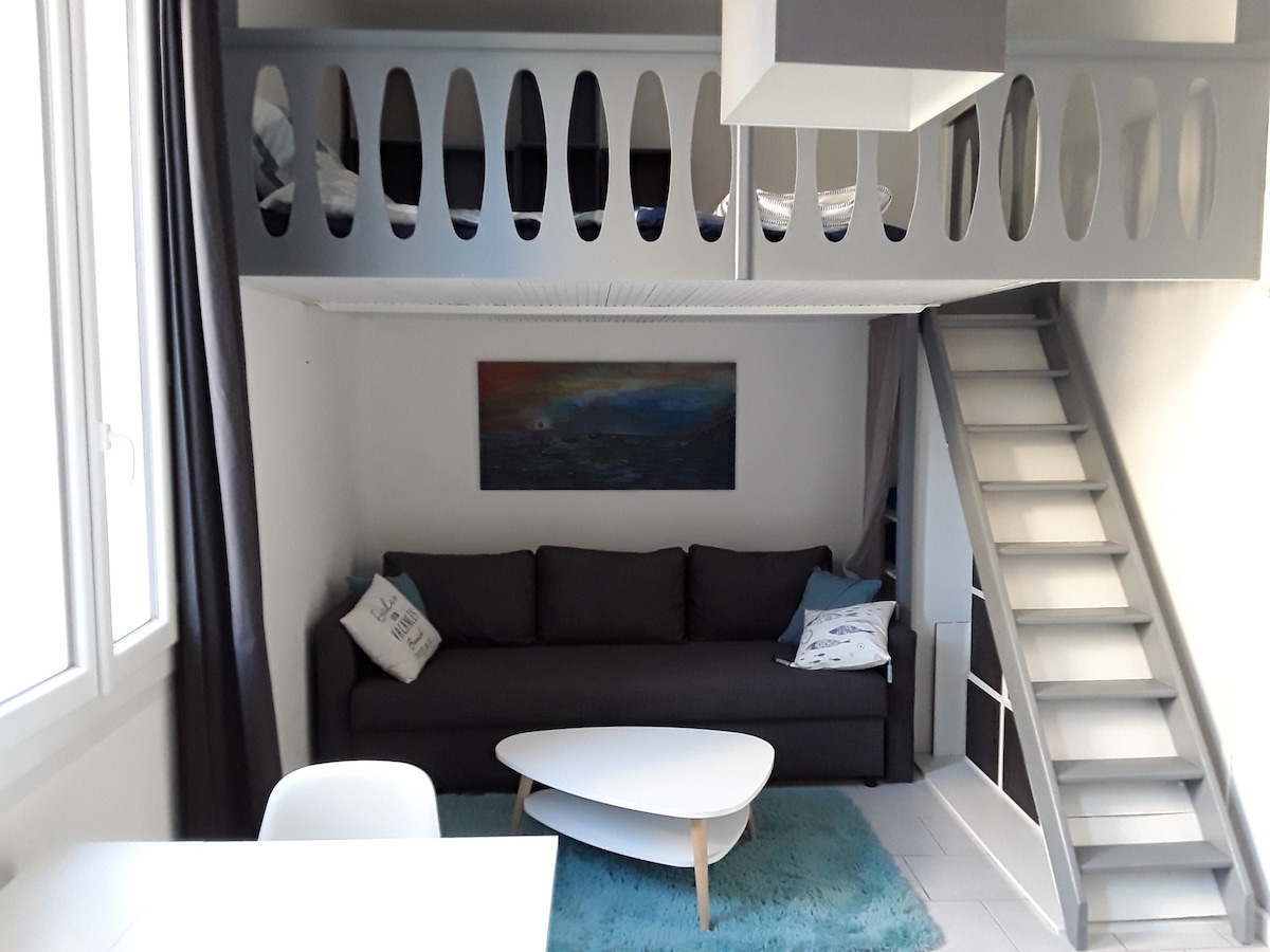 Scor mediu de 4,88 din 5, 89 recenziiStudio frumos Mezzanine în inima parcării Bandol +