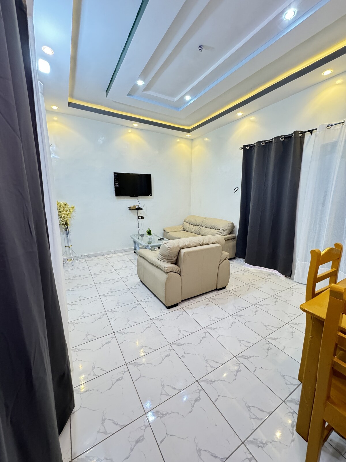 Descoperă puterea și eleganța Beninului într-un apartament confortabil cu un dormitor. Cu propria chicinetă, TV și aer condiționat, este baza ideală de unde să explorezi împrejurimile. Vizitează piețele locale și siturile istorice și bucură-te de ospitalitatea proprietarului și concierge-ului nostru. Prețul include transportul de la aeroport la apartament, încărcarea energiei electrice cu cardul în valoare de 10 € și curățenia. Sală de petreceri = preț la cerere