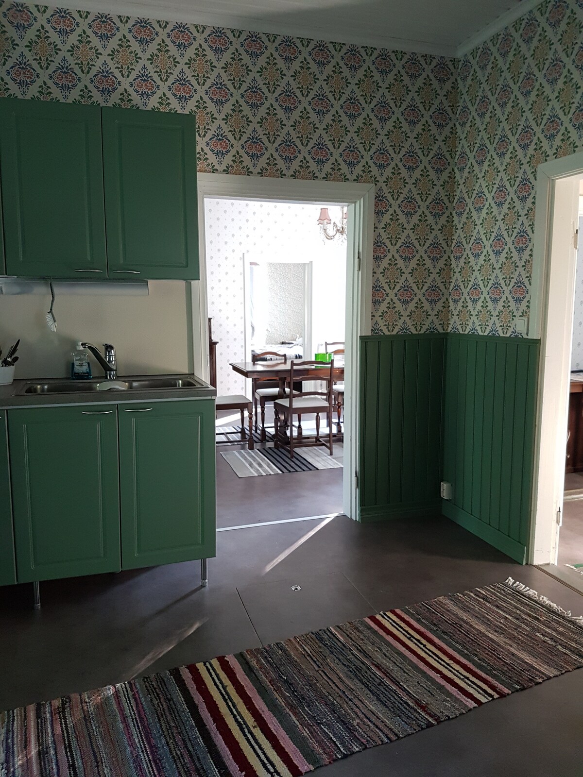 Ești pe cont propriu, dar aproape de tot atunci când stai în această casă mică atmosferică. Există un pasaj de pe stradă printr-o mică terasă în interiorul casei. Apartamentul are o zonă mică de luat masa și o bucătărie, o baie și un living separat. Patul este un pat dublu cu lățimea de 140 cm. În plus, trebuie întinsă o canapea extensibilă (70/140 *200 cm). Când se solicită, salteaua va fi aranjată pentru a cincea oară. Apartamentul are încălzire prin pardoseală, iar pompa de căldură cu sursă de aer se răcește în căldura verii. Magazinul universal este aproape de colț, iar piața este la aproximativ 250 m.