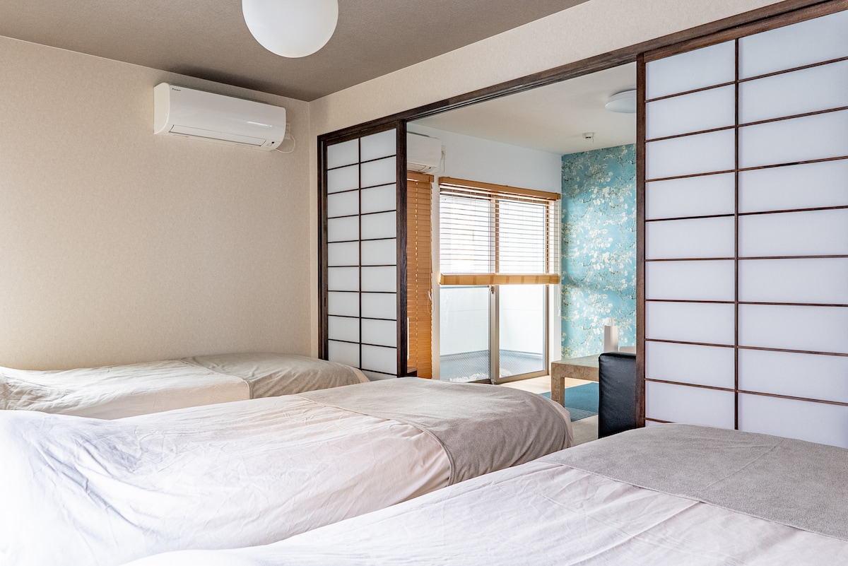 Direct la Namba/ Aproape de stații /Două paturi/3 persoane