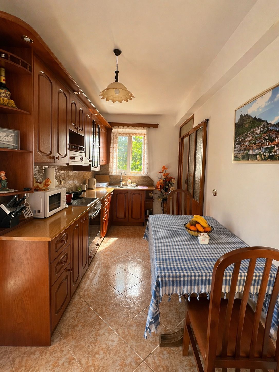 Aceasta este casa mea din copilărie, renovată recent pentru vacanța familiei mele. Se află într-un cartier liniștit, sub castelul Berat, care se află la doar 10 minute de mers pe jos. Oferă o priveliște minunată asupra văii, orașului, râului și muntelui. Îți va plăcea să stai pe terasă sau pe terase, să te bucuri de priveliște și de culorile răsăritului/apusului de soare, în timp ce iei micul dejun/cina sau pur și simplu să savurezi vin. Aș sugera să rezervați pentru cel puțin 2 nopți, pentru a avea timp să descoperi fermecătorul Berat.