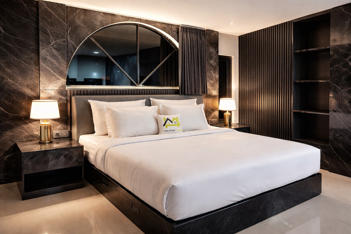 Bine ai venit în noul nostru penthouse cu 2 dormitoare din centrul orașului Canggu! Acest spațiu de la ultimul etaj oferă vedere la mare și apus de soare, cu o estetică modernă și atmosferă de plajă. Ferestrele din podea până în tavan cu vedere la 180° oferă lumină naturală și priveliști uluitoare. Într-un cartier extrem de sigur, unitatea noastră se află la 5 minute de mers pe jos de plaja Canggu, cafenele, restaurante, săli de sport și magazine. Menaj zilnic, aer condiționat premium și Wi-Fi rapid (50mbps) sunt ideale pentru lucrul de la distanță, streaming video și relaxare!